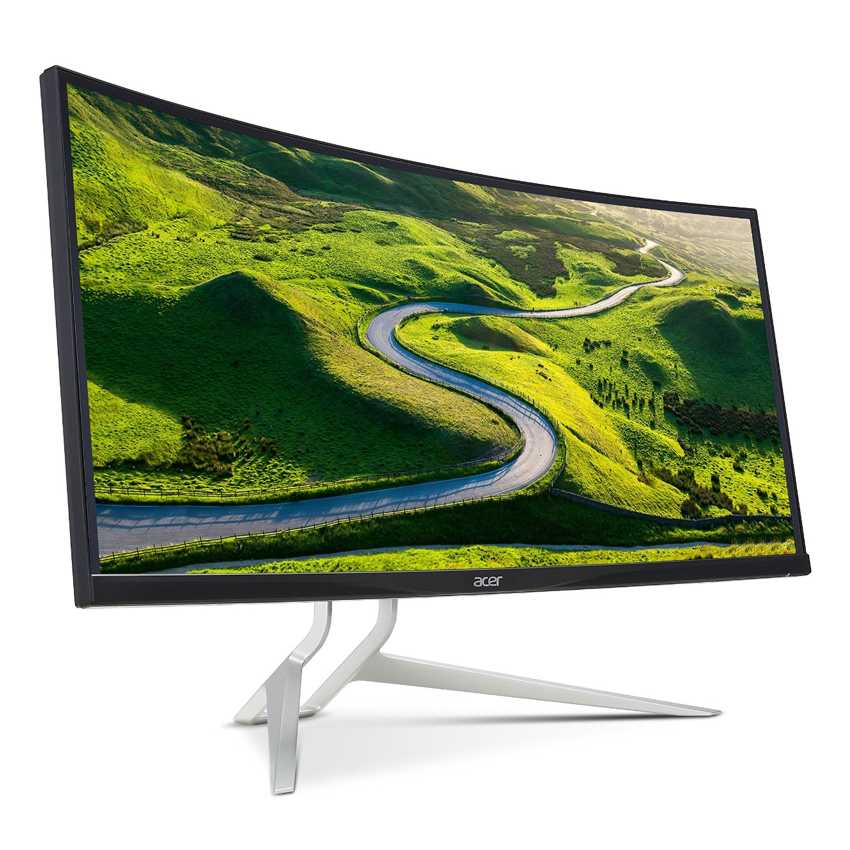Descripción Acer XR342CK, XR. Diagonal de la pantalla: 86,4 cm (34"), Brillo de pantalla: 300 cd / m², Resolución de la pantalla: 3440 x 1440 Pixeles. Color del producto: Negro. Ángulo de inclinación: -5 - 35°, Ajuste de altura: 13 cm. Consumo de energía (inactivo): 0,5 W, Consumo energético: 53 W, Consumo de energía (apagado): 0,48 W. Ancho: 816,2 mm, Profundidad: 124,7 mm, Altura: 367,7 mm