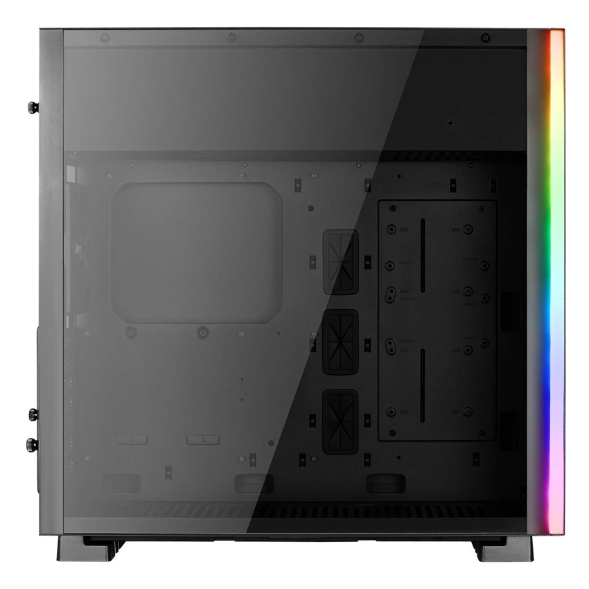 Incluye un panel lateral de vidrio templado para mostrar el interior del equipo.