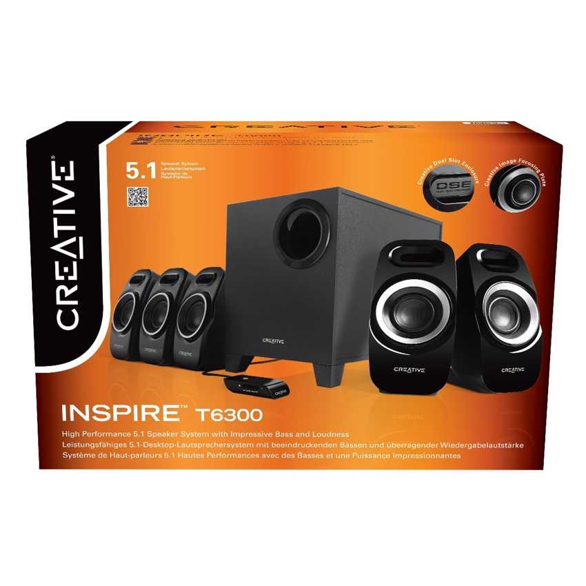 Inspire es el modelo más sonoro hasta el momento, pero Creative va más allá de la experiencia 5.1 en películas, juegos y música gracias a Inspire T6300, con audio de espectro completo que incluye graves medios mejorados y una organización acústica sorprendetemente precisa. Combinado con un subwooder con puerto de graves y salida inferior, los satélites del sistema utilizan Creative DSE (Dual Slot Enclosure) que permite a los satélites producir graves medios más sonoros y pronunciados. Cada satélite utiliza un Creative IFP (Image Focusing Plate) para determinar la dirección y la organización del sonido. Diseñado de forma exclusiva, el T6300 incluye satélites frontales pronunciados mientras que los posteriores y centrales son más discretos. Rodéate hoy del audio con el Inspire T6300.