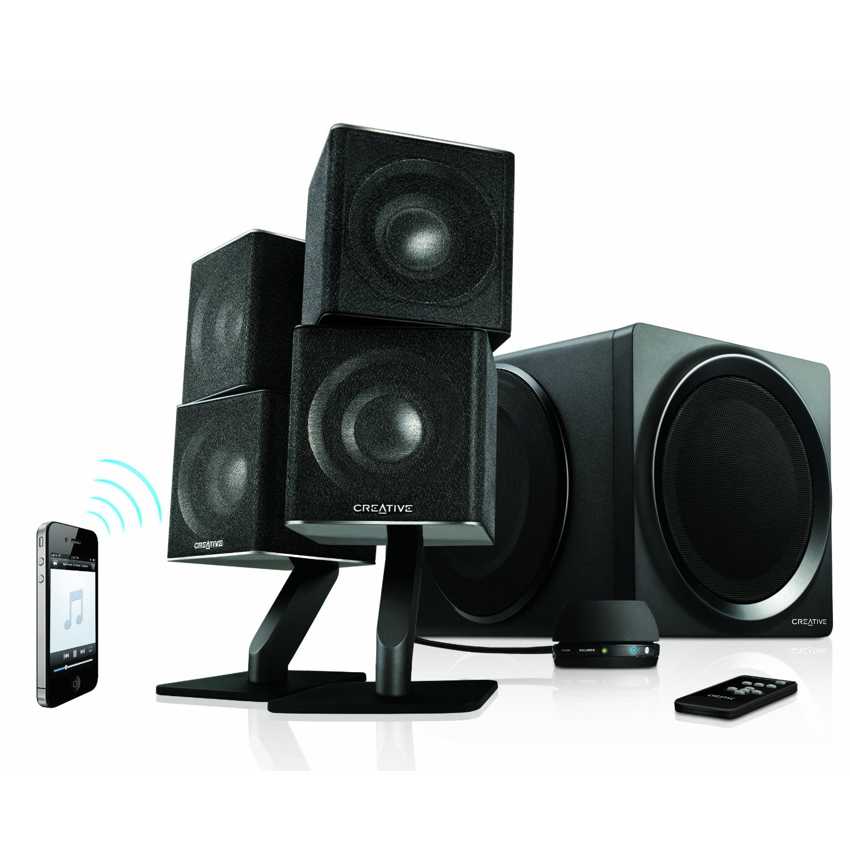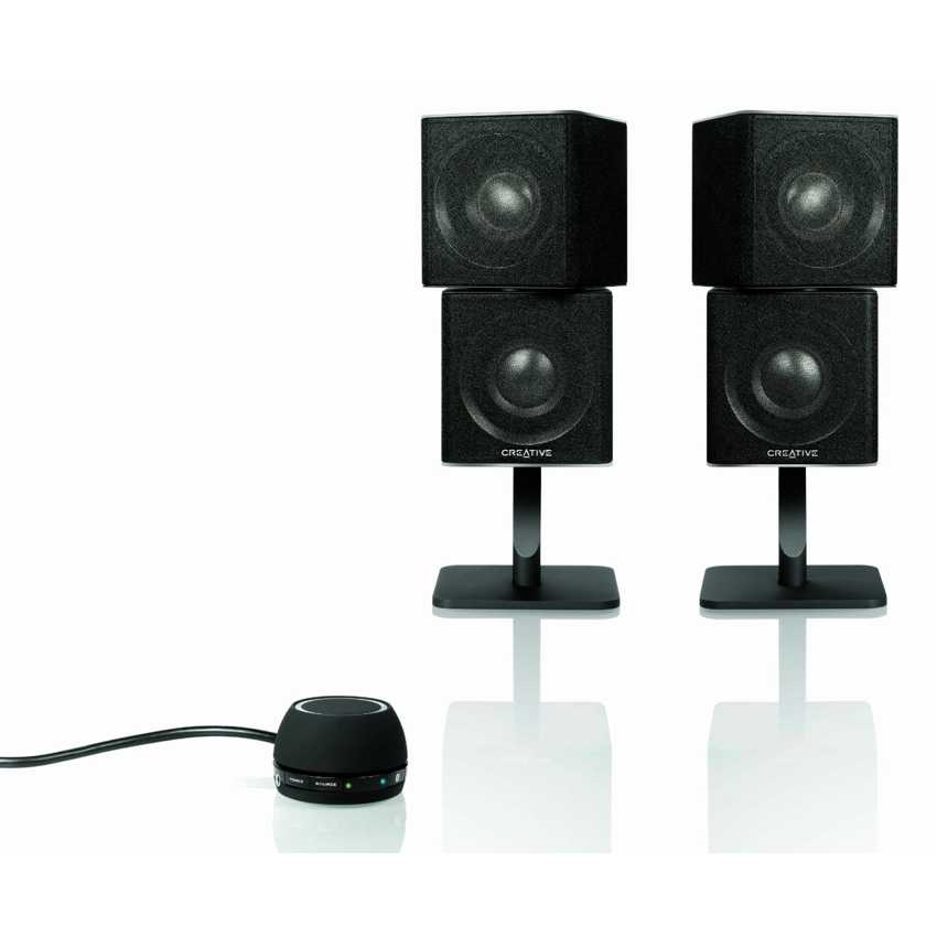 Descripción Creative Labs T6 II. Tipo de sistema: 2.1 system, Uso recomendado: universal, Ubicación de bocina: Piso, Mesa/estante. Tecnología de conectividad: Alámbrico/Inalámbrico, Tecnología inalámbrica: Bluetooth, Auriculares: 3,5 mm. Ancho: 85 mm, Profundidad: 85 mm, Altura: 225 mm. Dimensiones de subwoofer (alto x largo x ancho ): 240 x 320 x 220 mm, Peso de subwoofer: 4.86 kg