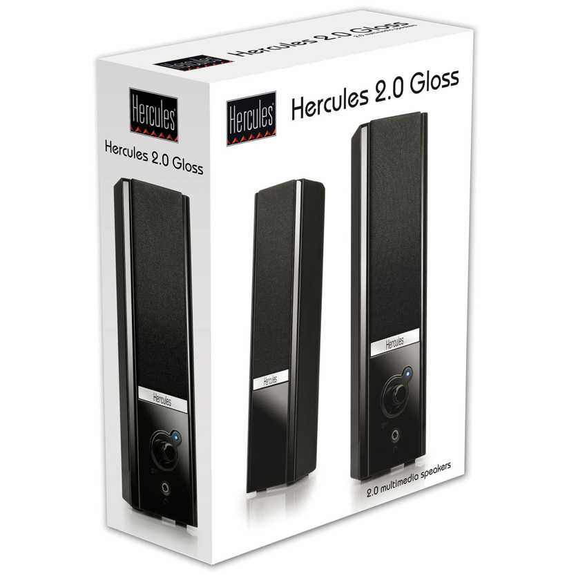 Descripción Hercules 2.0 Gloss. Uso recomendado: universal, Ubicación de bocina: Piso, Posición del altavoz: Satélite. Potencia estimada RMS: 4 W. Tipo de control remoto: Alámbrico, Control de volumen: Digital. Color del producto: Negro. Tecnología de conectividad: Alámbrico