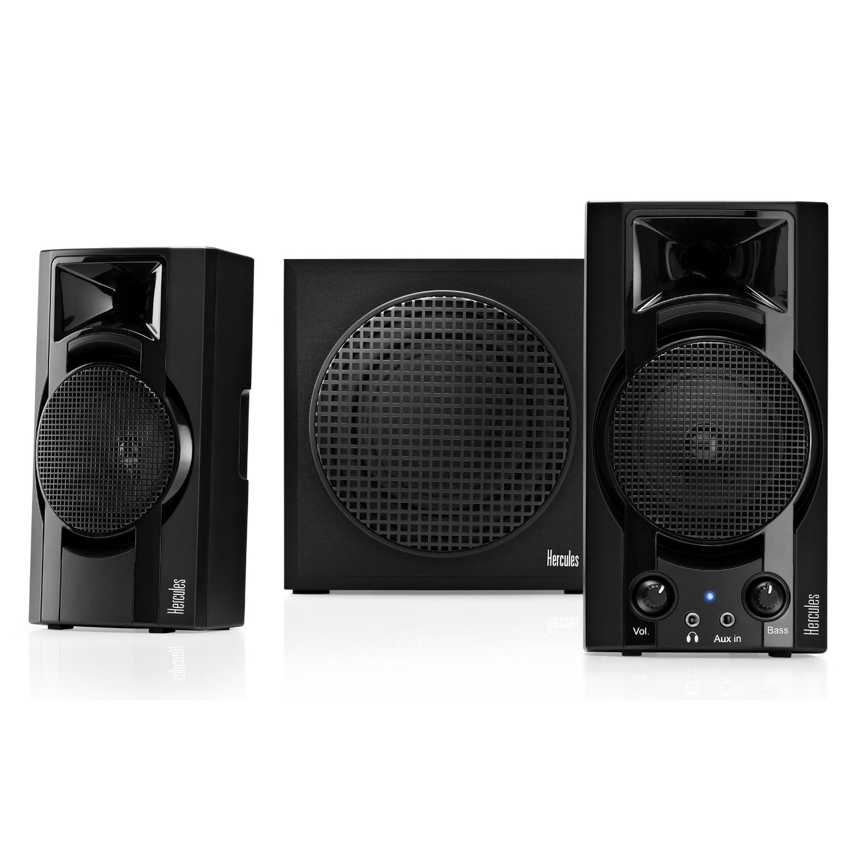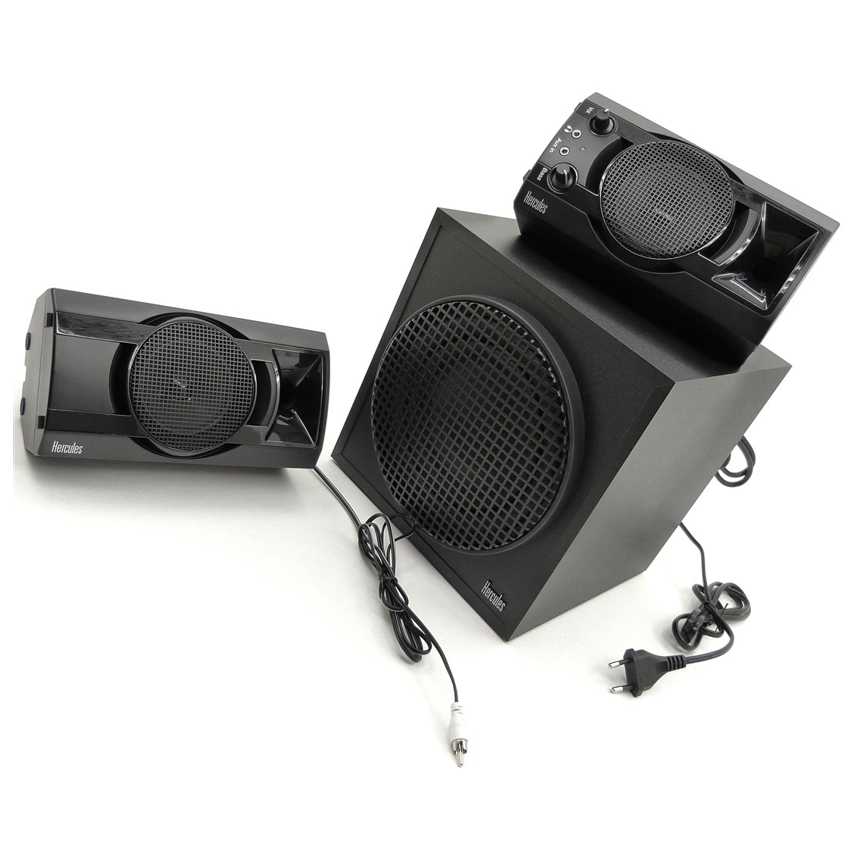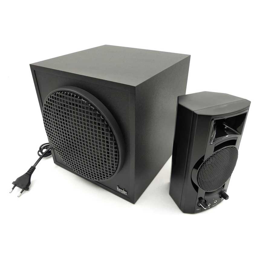 Descripción Hercules XPS 2.1 Bassboost. Canales de salida de audio: 2.1, Potencia estimada RMS: 32 W, Uso recomendado: PC. Potencia RMS de altavoces satélite: 16 W. Potencia RMS de subwoofer: 16 W. Fuente de energía: Corriente alterna. Dimensiones de bocina satelital (AxLxA): 105 x 95 x 195 mm, Dimensiones de subwoofer (AxLxA): 215 x 230 x 225 mm