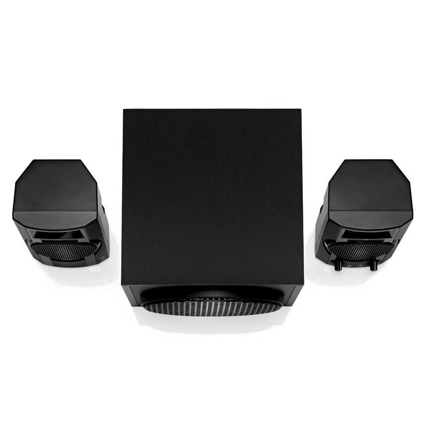Especificaciones Canales de salida de audio: 2.1 Potencia estimada RMS: 32 W Uso recomendado: PC Número de satélites: 2 Potencia RMS de altavoces satélite: 16 W Montaje en pared de bocinas satelitales: Si Potencia RMS de subwoofer: 16 W Subwoofer inalámbrico: No Ajuste de bajos: Si Cantidad de drivers de altavoces: 1 Fuente de energía: Corriente alterna Dimensiones de bocina satelital (AxLxA): 105 x 95 x 195 mm Dimensiones de subwoofer (AxLxA): 215 x 230 x 225 mm Operado remotamente: No Materiales: Metal, De plástico, Madera Color del producto: Negro Magnéticamente protegida: Si Rango de frecuencia: 40 - 20000 Hz Ancho de subwoofer: 21,5 cm Control de volumen: Giratorio Salidas para auriculares: 1 Salida de pico de potencia musical (PMPO): 64 W Certificación: RoHS Cables incluidos: Corriente alterna, Audio (3.5mm) Tarjeta de garantía: Si Manual de usuario: Si