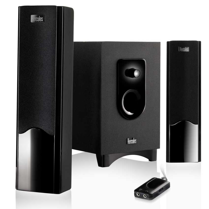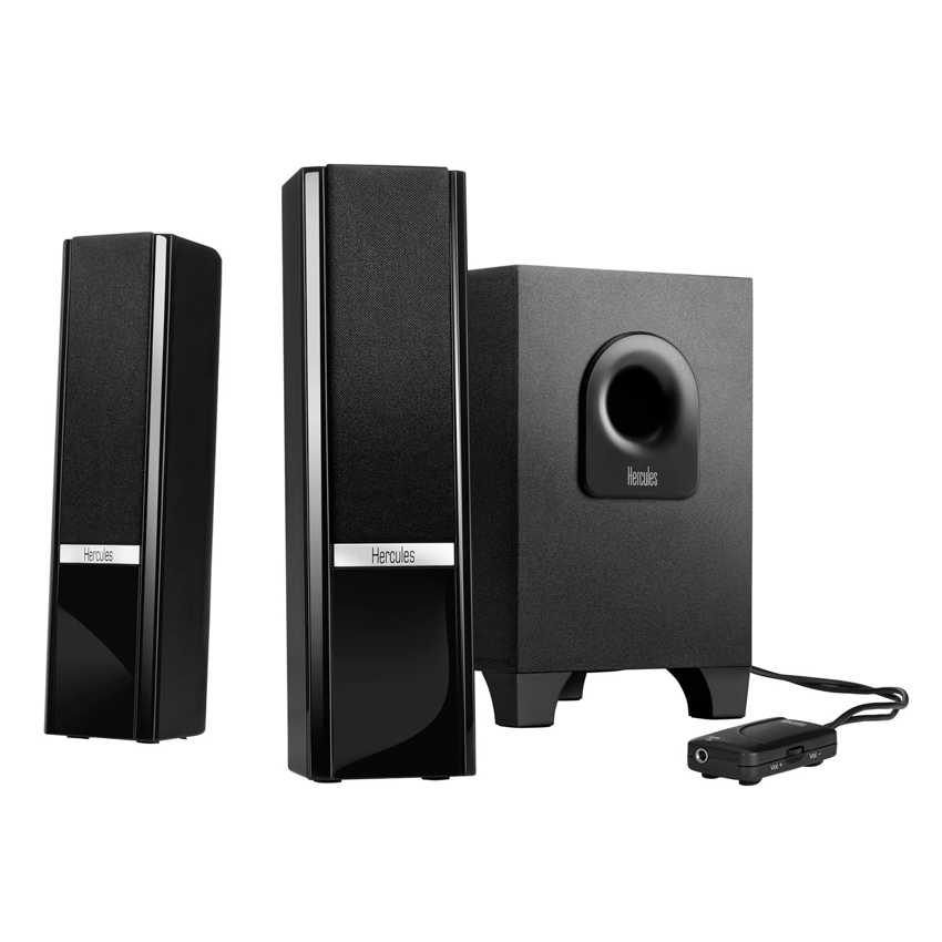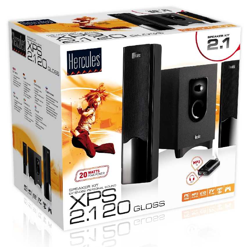Descripción Hercules 2.1 Gloss. Canales de salida de audio: 2.1, Potencia estimada RMS: 8 W, Uso recomendado: Universal. Potencia RMS de altavoces satélite: 4 W. Tipo de subwoofer: Activo, Potencia RMS de subwoofer: 4 W. Fuente de energía: Corriente alterna. Dimensiones de bocina satelital (AxLxA): 60 x 60 x 210 mm, Dimensiones de subwoofer (AxLxA): 14 x 17.5 x 220 mm