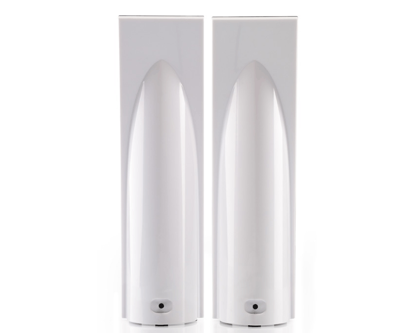 Los satélites cuentan con un acabado blanco lacado. Rejilla protectora metálica lacada en negro para los drivers de los altavoces.