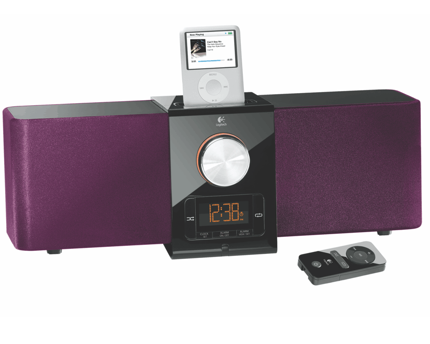 La base de altavoces Logitech® Pure-Fi Express Plus para iPod e iPhone ofrece acústica omnidireccional para un gran sonido en toda la habitación. También incluye la capacidad de funcionamiento con alimentación de CA o pilas, que, junto con el asa integrada, permite llevar la música de una habitación a otra; un reloj con alarma que le despertará a tiempo; y un mando a distancia inalámbrico que funciona a una distancia de hasta 10 metros y se guarda fácilmente en un compartimento integrado. En definitiva: una opción genial para acoplar el iPod/iPhone, cargarlo y reproducir música.