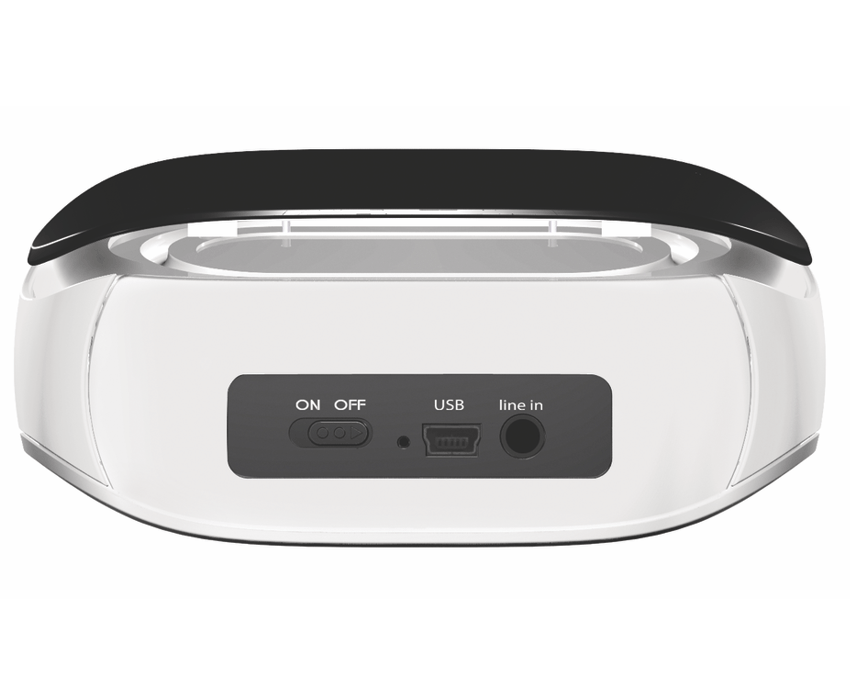 Uso recomendado: Teléfono MóvilNúmero de dispositivos: 1Control de volumen: DigitalNúmero de productos incluidos: 1 piezasCantidad de puertos USB 2.0: 1Tecnología de conectividad: InalámbricoTecnología inalámbrica: BluetoothComptabilidad de docking: iPad, iPhone, iPodInterruptor Encendido/Apagado: SiColor: Negro-BlancoTipo de fuente de poder: Baterías, USBAutonomía: 10 hCables incluidos: USBGuía de configuración rápida: SiTipo: Altavoces portátilesAdaptador AC incluido: Si