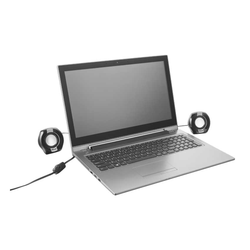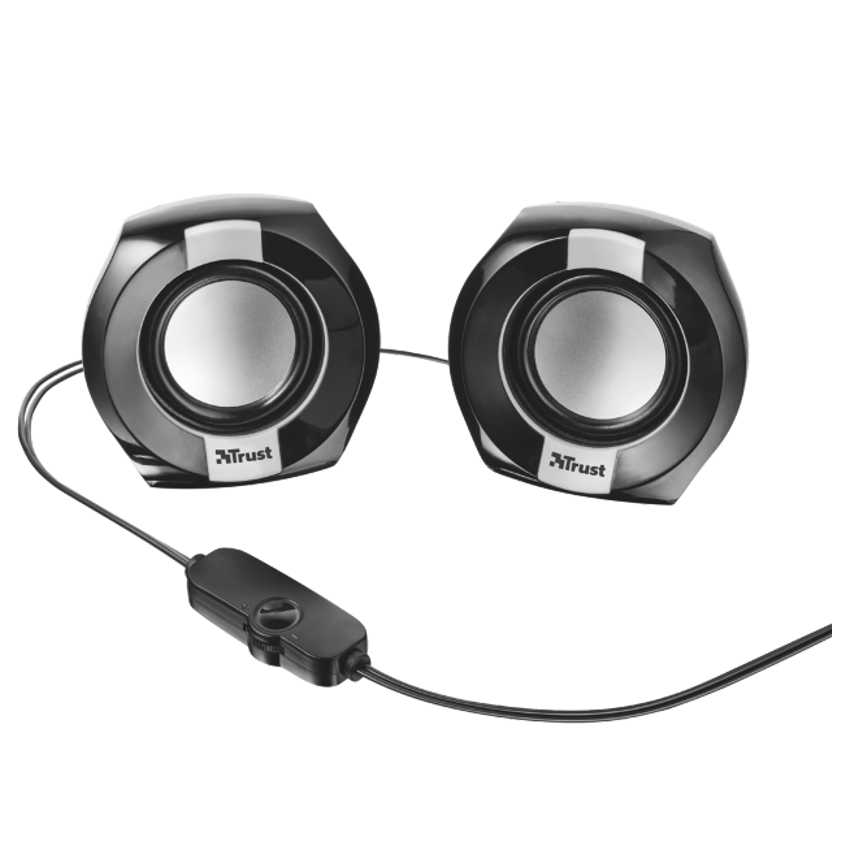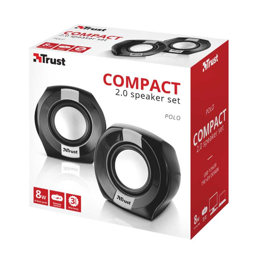 Descripción Trust Polo Compact 2.0. Uso recomendado: Universal, Ubicación de bocina: Mesa/estante. Potencia estimada RMS: 8 W. Color del producto: Negro. Tecnología de conectividad: Alámbrico, Tipo de interfaz de bocina: 3,5 mm