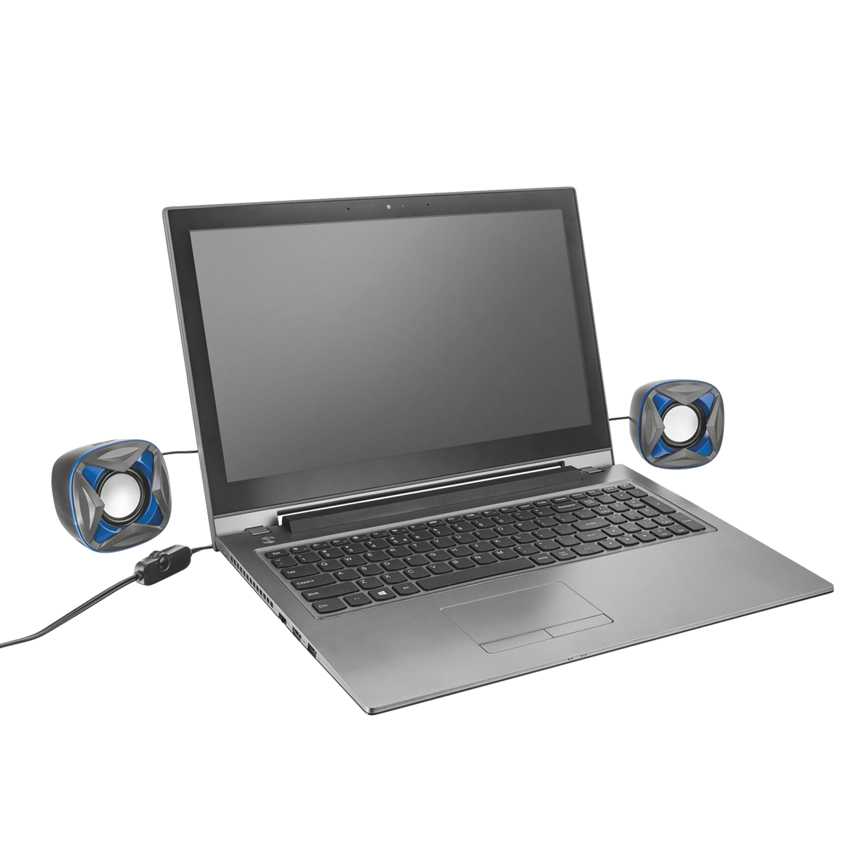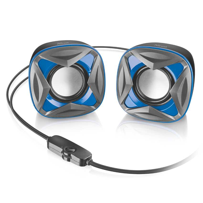 Descripción Trust Xilo Compact 2.0. Uso recomendado: PC, Ubicación de bocina: Mesa/estante. Potencia estimada RMS: 4 W, Salida de pico de potencia musical (PMPO): 8 W. Color del producto: Negro, Azul. Tecnología de conectividad: Alámbrico, Tipo de interfaz de bocina: USB/3,5mm