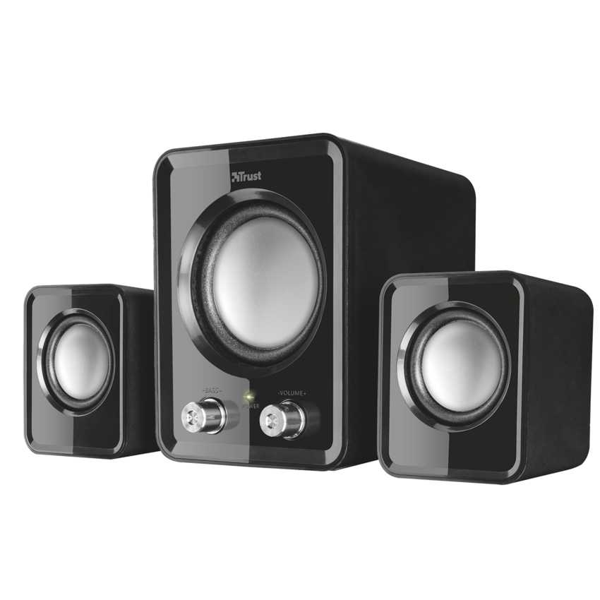Descripción - Potencia máxima de 12 W (RMS de 6 W) - Potente sonido procedente de un diseño compacto - Mando de bajos y volumen en el woofer - Alimentación por USB: sin necesidad de conexión a enchufe de pared