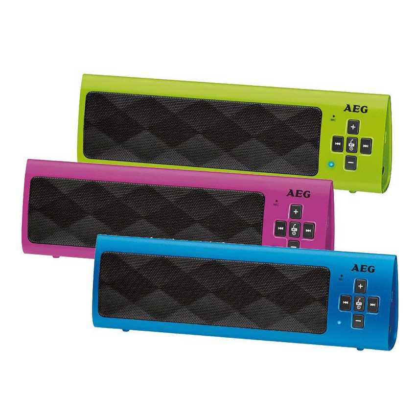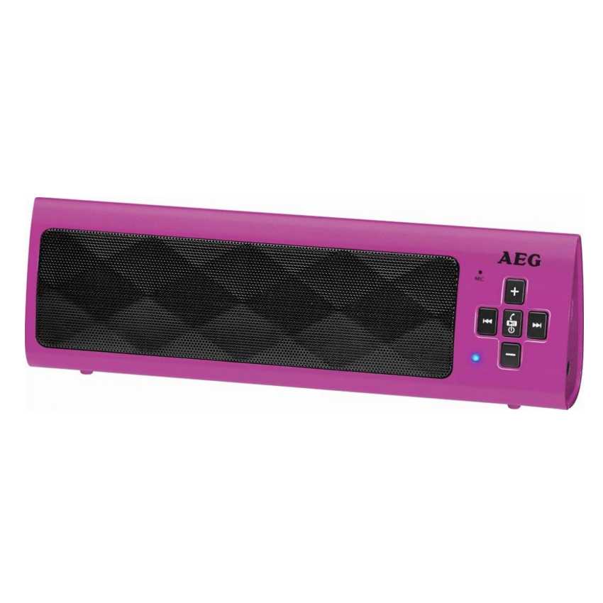 Descripción AEG BSS 4818. Canales de salida de audio: 2.1. Tecnología de conectividad: Inalámbrico y alámbrico, Interfaz: Bluetooth/USB, Perfiles de Bluetooth: A2DP. Tipo de producto: 2.1 system, Color del producto: Rosa, Control de volumen: Digital. Uso recomendado: Universal. Alimentación: Batería, DC, Tipo de batería: Integrado, Voltaje de la pila: 3,7 V