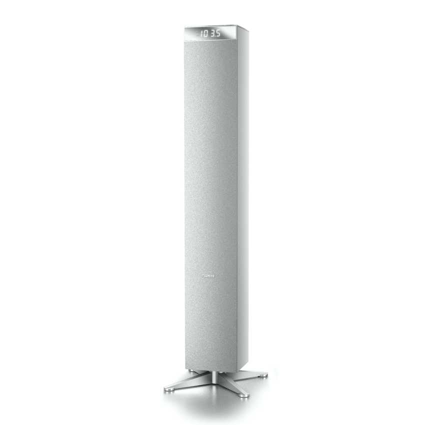 Especificaciones Uso recomendado: Universal Número de altavoces: 1 Ubicación de bocina: Piso Ampificador: Integrado Altavoz: Si Potencia estimada RMS: 80 W Operado remotamente: Si Control de volumen: Digital Color del producto: Plata Material de la carcasa: Madera Amplificador/entrada del receptor tipo de interfaz: 3.5 mm jack, RCA, USB Tecnología de conectividad: Alámbrico/Inalámbrico Tipo de interfaz de bocina: Bluetooth/NFC/USB/RCA/3.5mm Tecnología inalámbrica: Bluetooth Salidas para auriculares: 1 Auriculares: 3,5 mm Cantidad de puertos USB 2.0: 1 Comunicación de Campo Cercano (NFC): Si Alimentación: Corriente alterna Voltaje de entrada AC: 100 - 240 V Frecuencia de entrada AC: 50 - 60 Hz Tipo de embalaje: Caja Modulación: FM Pantalla: LED Ancho: 24,8 cm Profundidad: 24,8 cm Altura: 101,2 cm Peso: 5,35 kg Ancho del paquete: 19,2 cm Profundidad del paquete: 23,2 cm Altura del paquete: 105,1 cm Peso del paquete: 5,8 kg Cables incluidos: Audio (3.5mm) Mando a distancia: Si
