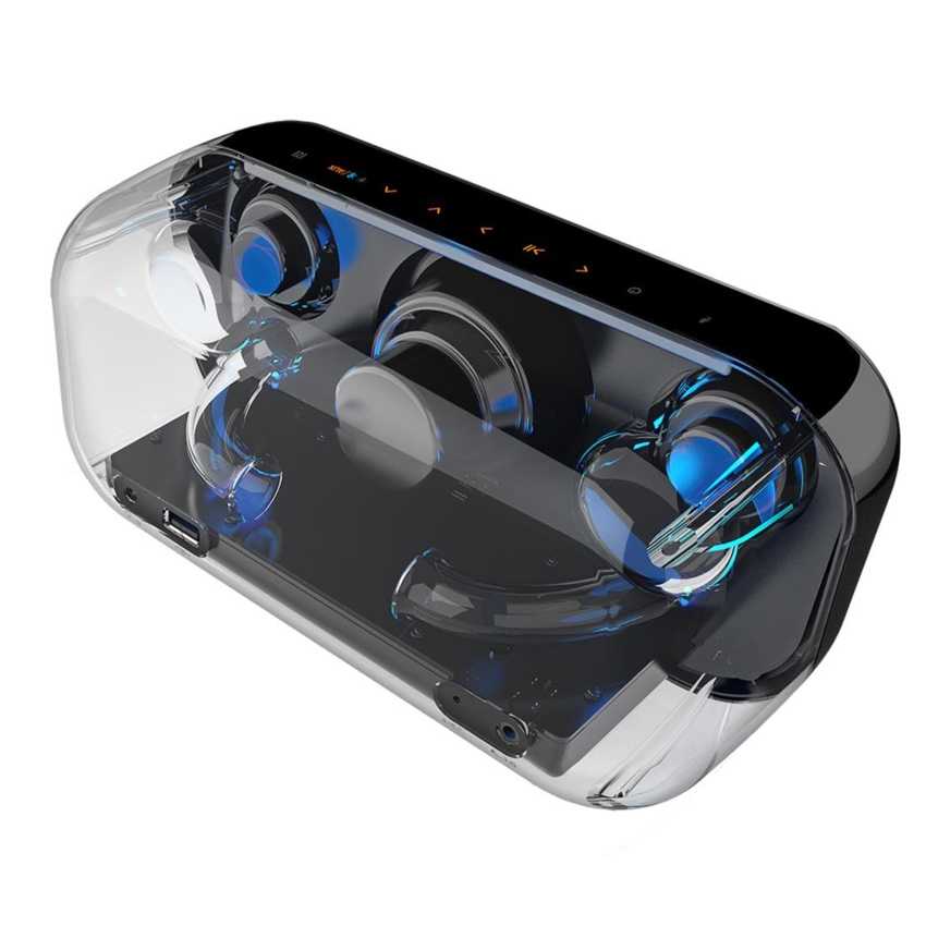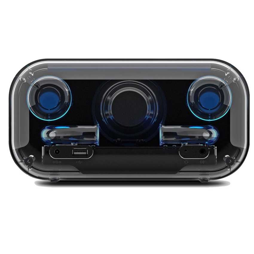 Descripción Custom 2.1 Audio System with 70mm active subwoofer delivering crisp low frequency reproduction Signature Ceramic Drivers creates clearer and cleaner mid and high frequencies through 40mm Ceramic Drivers Clear Back Design with 3-mode Mood Lighting aesthetics designed to accompany quality audio experience Bluetooth & NFC enabled for One-touch seamless Wireless Connectivity of up to 10m Noise-cancelling Microphone to filter background disturbances for phone calls Smartphone Charging Capabilities with high-capacity 6600mAh Li-ion battery