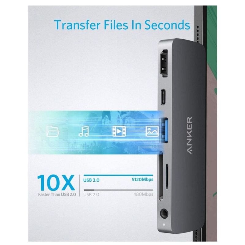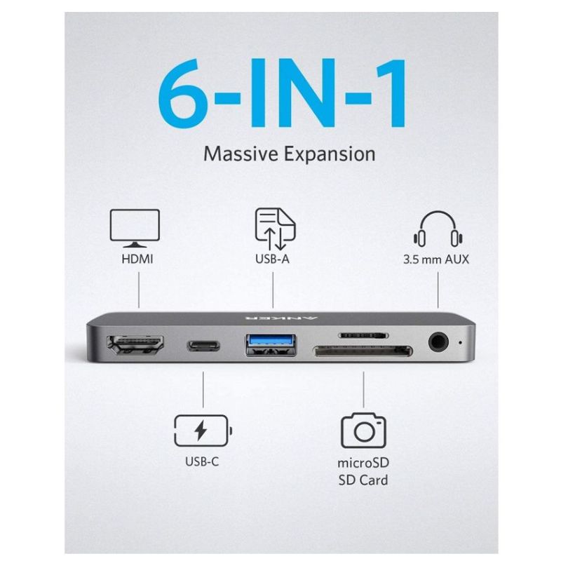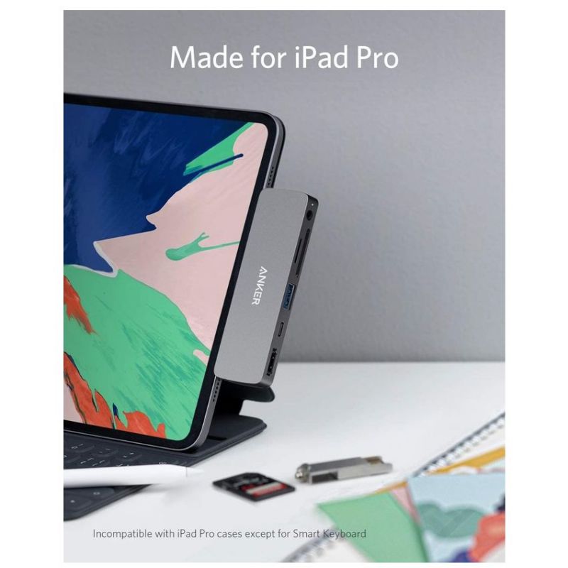 Descripción Anker A83620A1. Interfaz de host: USB 3.2 Gen 1 (3.1 Gen 1) Type-C, Interfaces de concentradores: 3,5mm, HDMI, USB 3.2 Gen 1 (3.1 Gen 1) Type-A, USB 3.2 Gen 1 (3.1 Gen 1) Type-C, Tarjetas de memoria compatibles: MicroSD (TransFlash), SD. Color del producto: Gris, Productos compatibles: iPad Pro 11? / iPad Pro 12.9?. Cantidad por paquete: 1 pieza(s), Tipo de embalaje: Caja