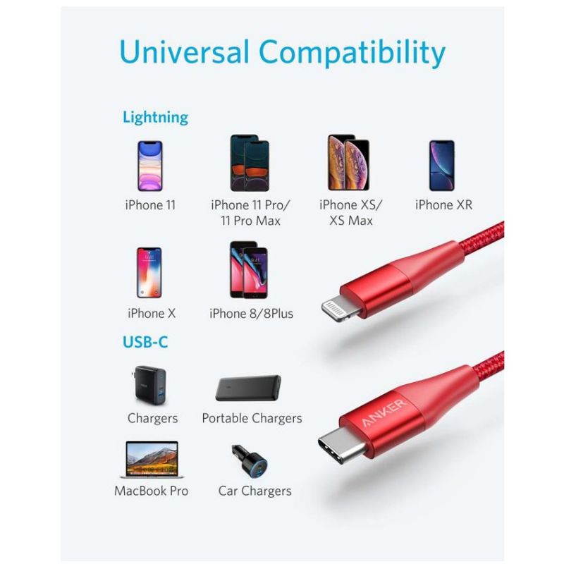 Descripción Anker PowerLine+ II. Longitud de cable: 1,8 m, Conector 1: USB C, Conector 2: Micro-USB B/Lightning, Color del producto: Rojo
