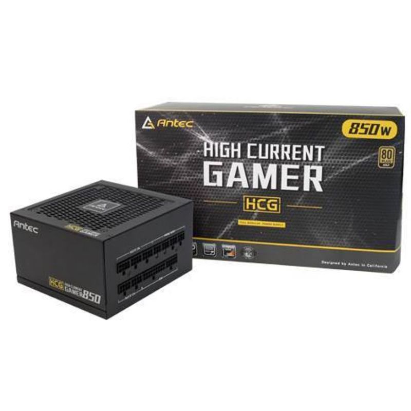 Descripción Antec HCG850. Potencia total: 850 W, Voltaje de entrada AC: 100 - 240 V, Frecuencia de entrada AC: 50 - 60 Hz. Alimentador de energía para tarjeta madre: 20+4 pin ATX, Tipo de cableado: Modular. Utilizar con: PC, Factor de forma de fuente de alimentación (PSU): ATX, Certificación 80 PLUS: 80 PLUS Gold. Color del producto: Negro, Diámetro de ventilador: 12 cm, Número de ventiladores: 1 Ventilador(es). Ancho: 150 mm, Profundidad: 140 mm, Altura: 86 mm