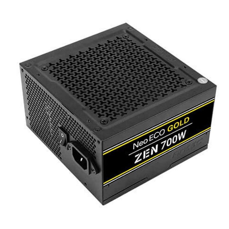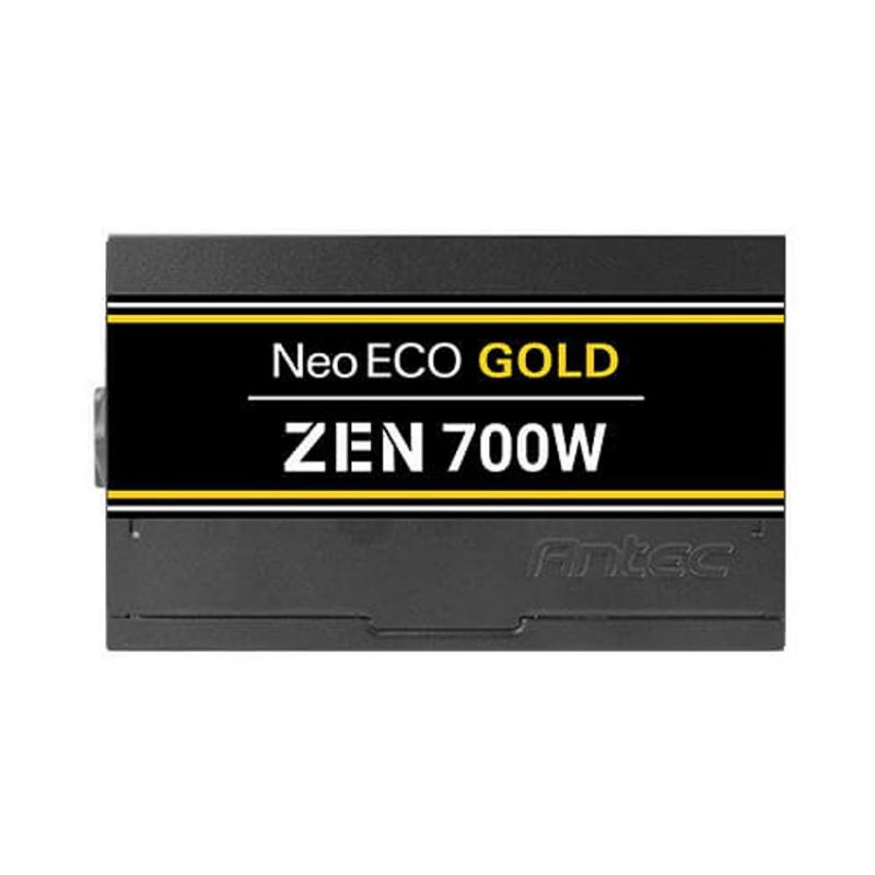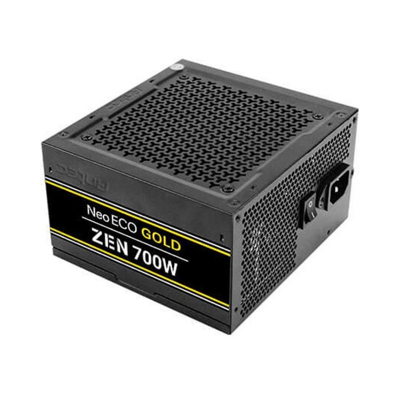 Descripción Antec NE700G Zen. Potencia total: 700 W, Voltaje de entrada AC: 100 - 240 V, Frecuencia de entrada AC: 50/60 Hz. Alimentador de energía para tarjeta madre: 20+4 pin ATX, Longitud del cable de alimentación de la placa base: 50 cm, Longitud del cable de alimentación SATA: 150,500 mm. Utilizar con: PC, Factor de forma de fuente de alimentación (PSU): ATX, Certificación 80 PLUS: 80 PLUS Gold. Color del producto: Negro, Diámetro de ventilador: 12 cm. Ancho: 150 mm, Profundidad: 140 mm, Altura: 86 mm