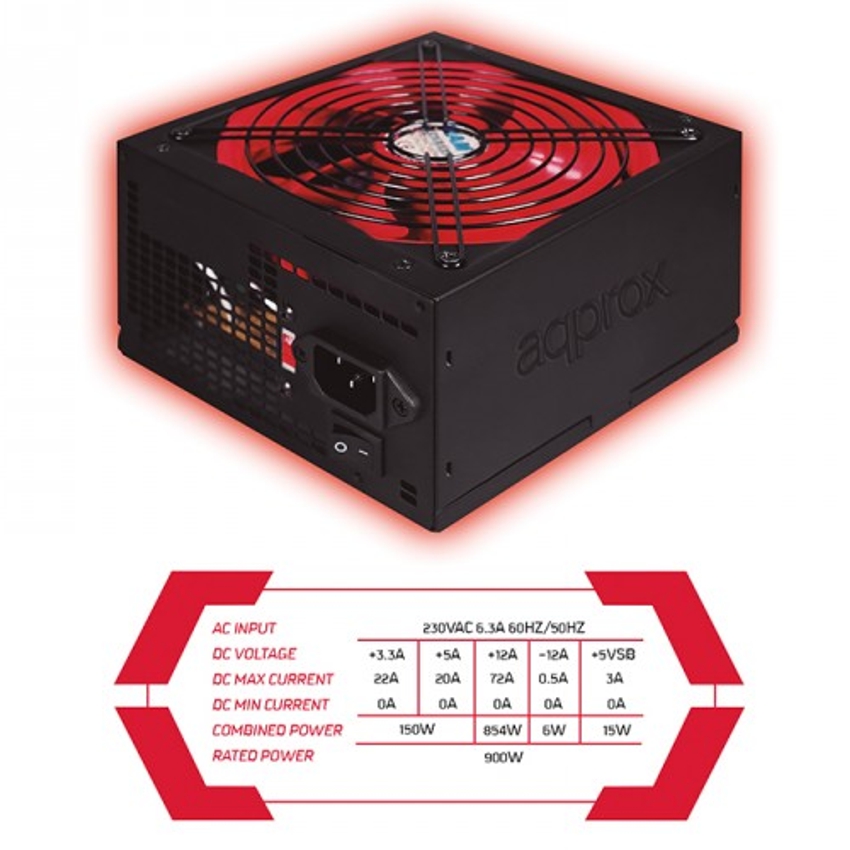 • Acabados Gaming con marcaje especial, ventilador rojo y materiales de primera calidad. • Máxima potencia 900W para que tu equipo soporte todas tus necesidades • PFC activo, protección contra sobretensión/subtensión, cortocircuito y sobrecarga • Cableado recubierto en malla protectora.