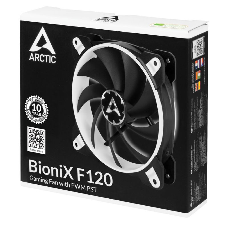 Descripción ARCTIC BioniX F120. Adecuado para: Carcasa del ordenador, Tipo: Ventilador, Diámetro de ventilador: 12 cm. Color del producto: Negro, Blanco, Número de ventiladores: 1 Ventilador(es). Conector de ventilador: 4 pines. Voltaje: 12 V, Intensidad nominal: 0,2 A. Dimensiones del ventilador (A x A x P): 120 x 120 x 27 mm, Peso de ventilador: 129 g, Ancho del paquete: 131 mm