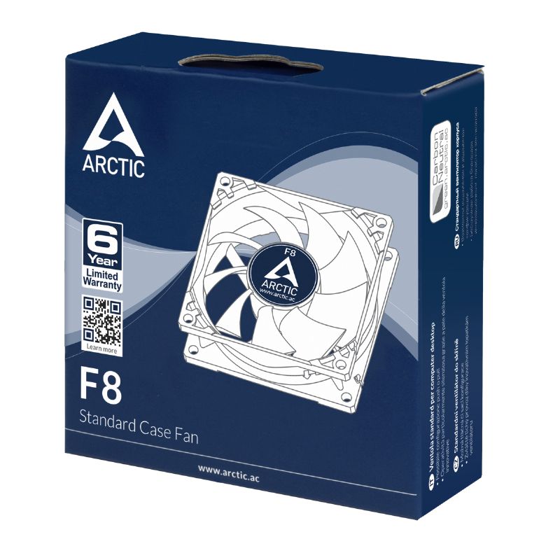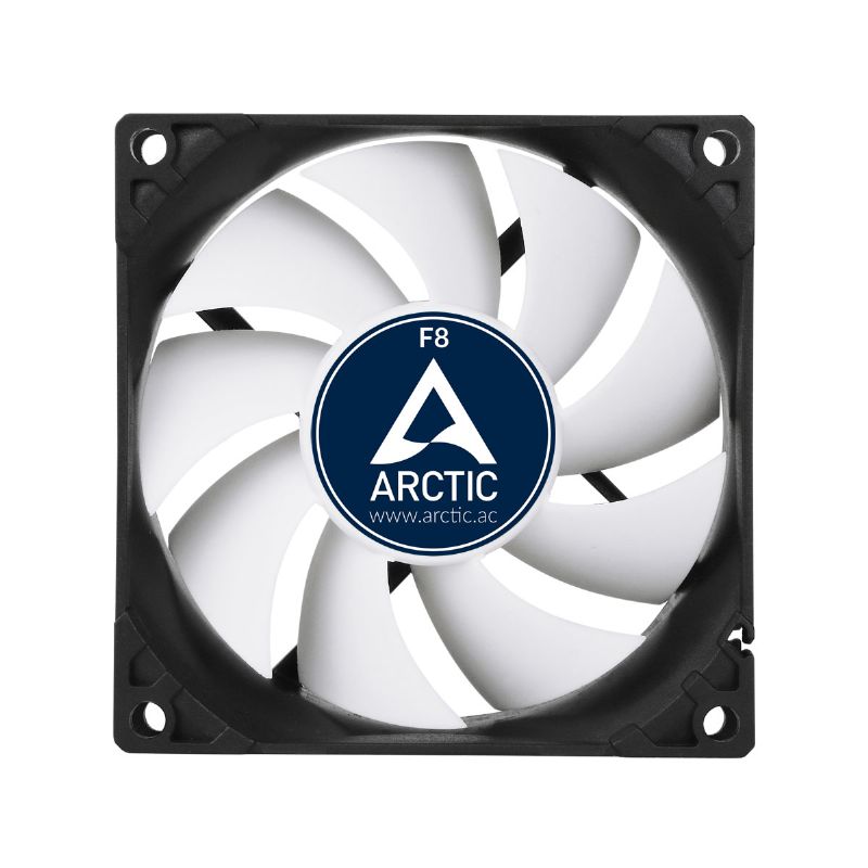 Descripción ARCTIC F8. Adecuado para: Carcasa del ordenador, Tipo: Ventilador, Diámetro de ventilador: 8 cm. Color del producto: Negro, Blanco, Material: De plástico, Número de ventiladores: 1 Ventilador(es). Conector de ventilador: 3 pines. Voltaje: 12 V, Voltaje de arranque: 2,6 V, Intensidad nominal: 0,16 A. Ancho: 80 mm, Profundidad: 25 mm, Altura: 80 mm