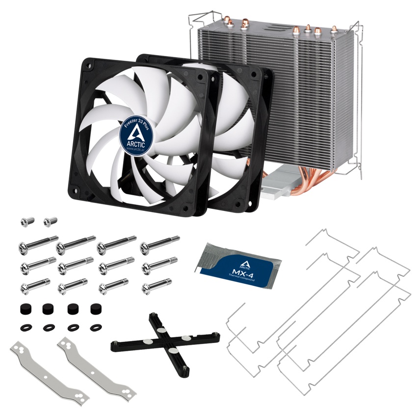 DescripciónARCTIC Freezer 33 Plus. Adecuado para: Procesador, Tipo: Enfriador, Diámetro de ventilador: 12 cm. Color del producto: Aluminio, Negro, Color blanco, Materiales: Aluminio, Acero. Intensidad nominal: 0,2 A. Ancho: 123 mm, Profundidad: 102 mm, Altura: 150 mmEspecificacionesAdecuado para: ProcesadorTipo: EnfriadorDiámetro de ventilador: 12 cmSockets de procesador soportados: Socket AM4,Socket H (LGA 1156),Socket H2 (LGA 1155),Socket H3 (LGA 1150),Socket LGA 1151,Socket R (LGA 2011),Socket R (LGA 2011-v3)Procesador compatible: Celeron,Core i3,Core i5,Core i7,Pentium,RyzenVelocidad de rotación (máx.): 1350 RPMCompatible con modulación por ancho de pulsos (PWM): SiNúmero de ventiladores: 2Diámetro de tubo disipador de calor: 6 mmNúmero de tubos disipadores de calor: 4Color del producto: Aluminio, Negro, Color blancoMateriales: Aluminio, AceroIntensidad nominal: 0,2 AVoltaje: 12Ancho: 123 mmProfundidad: 102 mmAltura: 150 mmPeso: 752 gAncho del paquete: 131 mmProfundidad del paquete: 130 mmAltura del paquete: 158 mmConector de ventilador: 4 pinesTornillos incluídos: Si