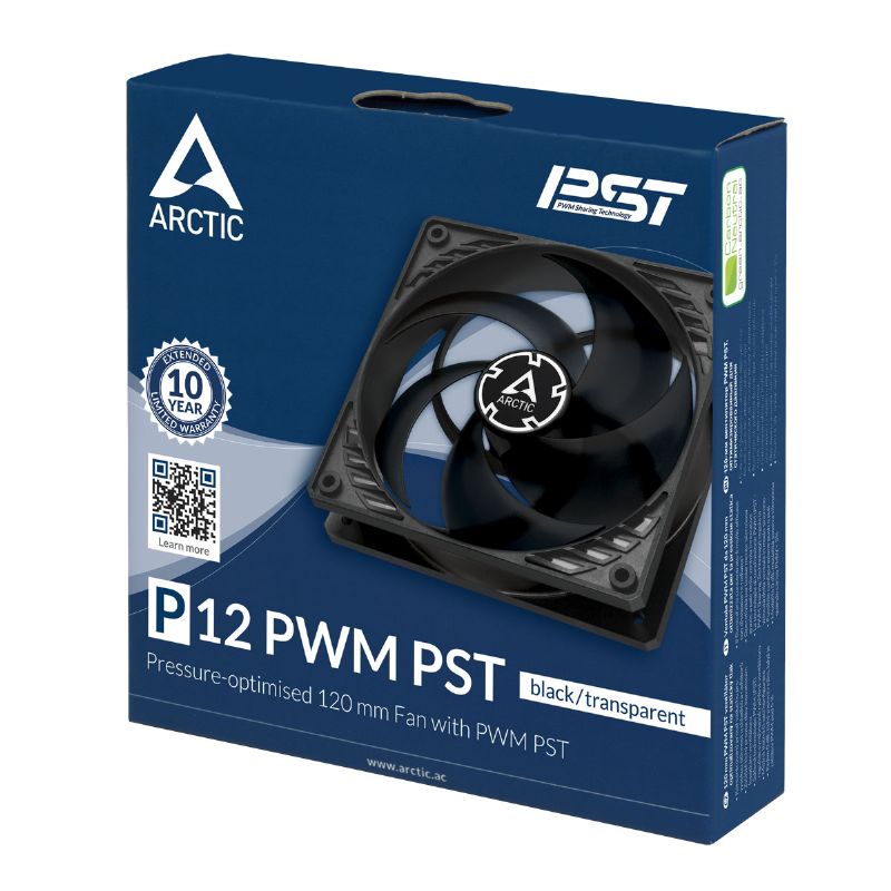 Descripción ARCTIC P12 PWM PST. Adecuado para: Carcasa del ordenador, Tipo: Enfriador, Diámetro de ventilador: 12 cm. Color del producto: Negro, Transparente, Número de ventiladores: 1 Ventilador(es). Conector de ventilador: 4-pin + 4-pin. Consumo energético: 0,96 W, Voltaje: 12 V, Voltaje de arranque: 3,9 V. Ancho: 120 mm, Profundidad: 120 mm, Altura: 25 mm