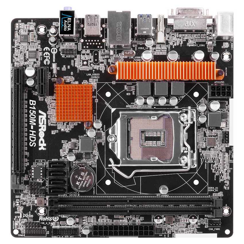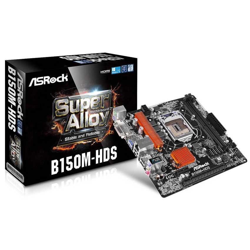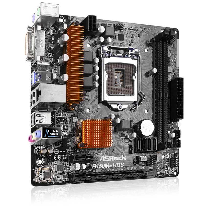 Descripción Asrock B150M-HDS. tipos de memoria compatibles: DDR4-SDRAM, Tipo de ranuras de memoria: DIMM, Canales de memoria: Dual. Familia de procesador: Intel, Procesador compatible: Celeron, Core i3, Core i5, Core i7, Pentium, Socket de procesador: LGA1151. Interfaces de unidad de disco duro soportadas: Serial ATA III. Controlador LAN: Realtek RTL8111GR, Tipo de interfaz ethernet: Gigabit Ethernet. Componente para: PC, Familia de componentes de tarjeta madre: Intel, Circuito integrado de tarjeta madre: Intel B150