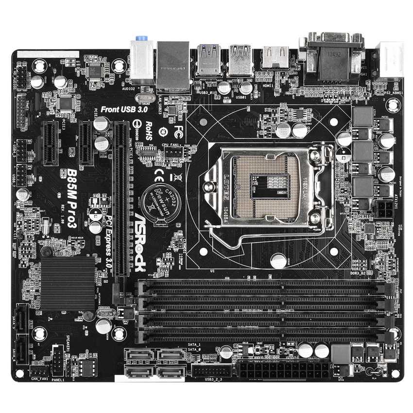 Especificaciones tipos de memoria compatibles: DDR3-SDRAM Tipo de ranuras de memoria: DIMM Número de ranuras de memoria: 4 Canales de memoria: Dual ECC: No No ECC: Si Velocidades de reloj de memoria soportadas: 1066,1333,1600 MHz Memoria interna máxima: 32 GB Memoria sin buffer: Si Familia de procesador: Intel Procesador compatible: Celeron, Core i3, Core i5, Core i7, Pentium, Xeon Socket de procesador: Socket H3 (LGA 1150) USB 2.0, conectores: 2 Conectores USB 3.0 ( 3.1 Gen 1 ): 1 Interfaces de unidad de disco duro soportadas: Serial ATA II, Serial ATA III Conector de ventilador CPU: Si Conector de potencia ATX (24 pines): Si Conector de instrusión a chasis: Si Número de conectores a ventilador de chasis: 1 Conector de audio en panel frontal: Si Conectores de poder (4 pin) periferales (Molex): 1 Número de conectores SATA II: 2 Número de conectores SATA III: 4 Cantidad de puertos USB 2.0: 4 Cantidad de puertos tipo A USB 3.0 (3.1 Gen 1): 2 Ethernet LAN (RJ-45) cantidad de puertos: 1 Puerto de ratón PS/2: 2 Salidas para auriculares: 2 Micrófono, jack de entrada: Si Cantidad de puertos VGA (D-Sub): 1 Cantidad de puertos DVI-D: 1 Número de puertos HDMI: 1 Ethernet: Si Controlador LAN: Realtek RTL8111GR Conexión de redes: Si Tipo de interfaz ethernet: Gigabit Componente para: PC Familia de componentes de tarjeta madre: Intel Circuito integrado de tarjeta madre: Intel B85 Tarjeta madre, factor de forma: Micro ATX Canales de salida de audio: 5.1 Sistema de audio: Realtek ALC662 Sistema operativo Windows soportado: Si Certificación: - FCC, CE, WHQL - ErP/EuP ready (ErP/EuP ready power supply is required) Memoria máxima de adaptador de gráficos: 1792 MB HDCP: Si Graphics chipset: Intel Versión DirectX: 11.1 Máxima resolución: 1920 x 1200 Pixeles Número de pantallas soportadas: 3 PCI Express x1 (Gen 2.x) ranuras: 2 PCI Express x16 Gen (3.x) ranuras: 1 Tipos de BIOS: UEFI AMI BIOS, tamaño de memoria: 32 MB Versión ACPI: 1.1 Cables incluidos: SATA Controladores incluidos: Si Guía de instalación rápida: Si