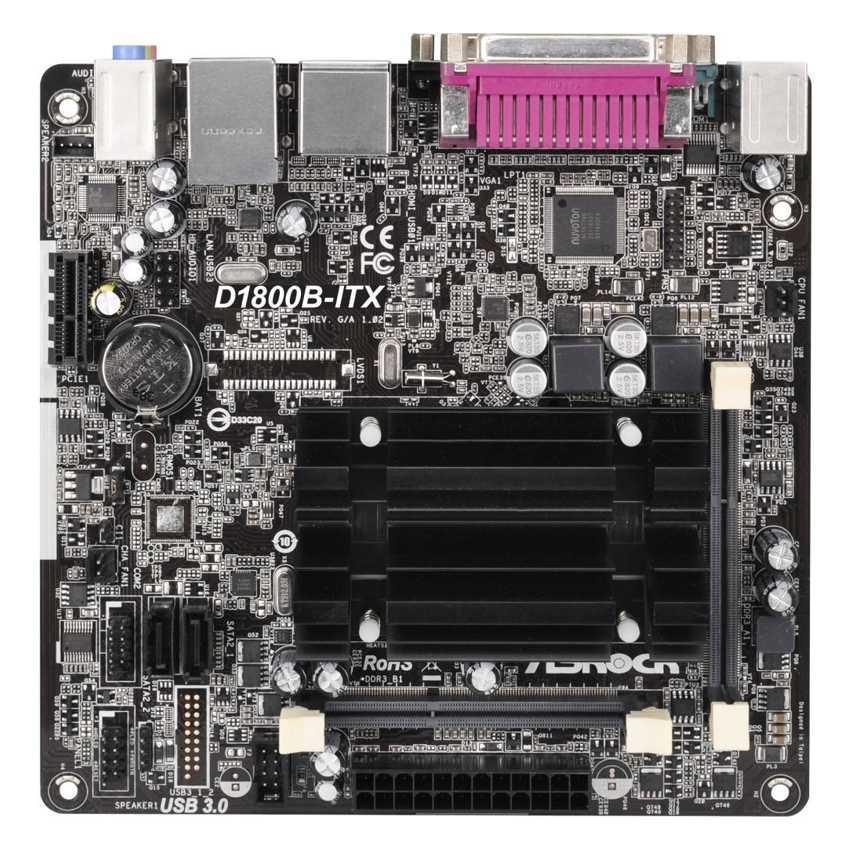 Descripción Asrock D1800B-ITX. tipos de memoria compatibles: DDR3-SDRAM, Tipo de ranuras de memoria: SO-DIMM, Canales de memoria: Dual. Familia de procesador: Intel, Socket de procesador: NA (CPU integrada), Modelo del procesador: Celeron J1800. Interfaces de unidad de disco duro soportadas: Serial ATA II. Controlador LAN: Realtek RTL8111GR. Componente para: PC, Familia de componentes de tarjeta madre: Intel, Tarjeta madre, factor de forma: Mini ITX
