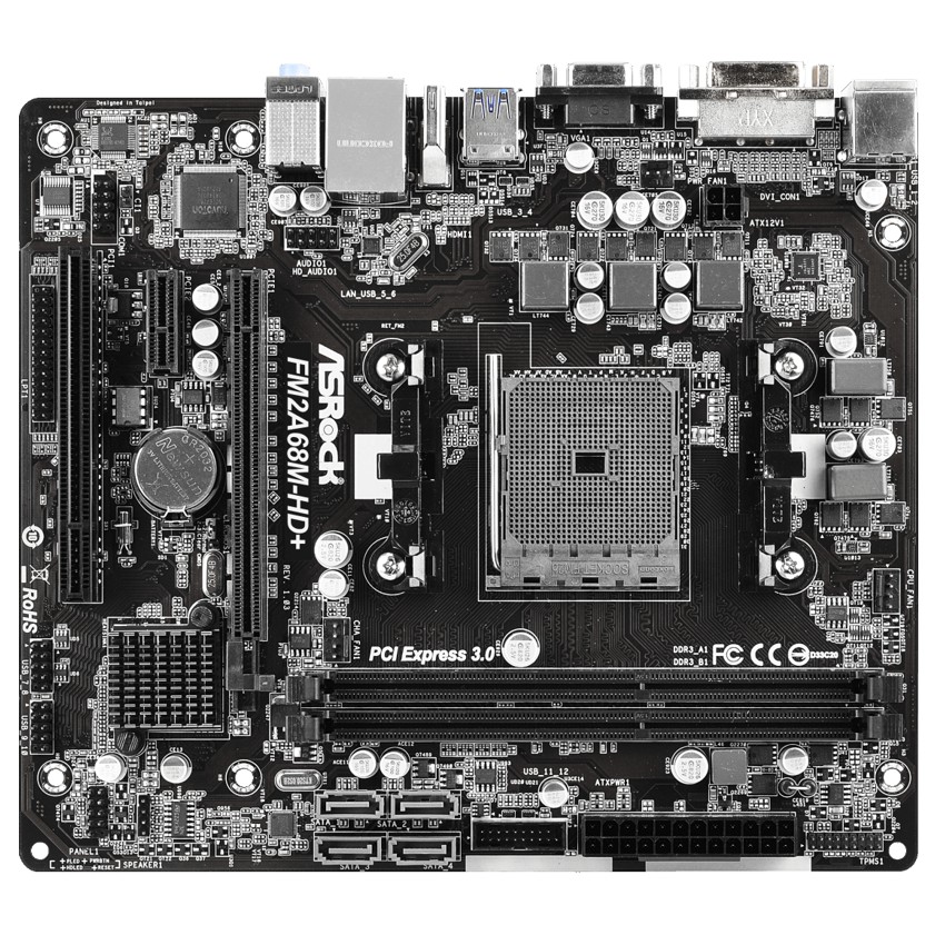 Especificaciones tipos de memoria compatibles: DDR3-SDRAM Tipo de ranuras de memoria: DIMM Velocidades de reloj de memoria soportadas: 1066,1333,1600 MHz Número de ranuras de memoria: 2 Canales de memoria: Dual ECC: No No ECC: Si Memoria interna máxima: 32 GB Memoria sin buffer: Si Familia de procesador: AMD Socket de procesador: Socket FM2+ Potencia térmica del procesador (max): 100 W USB 2.0, conectores: 2 Conectores USB 3.0 ( 3.1 Gen 1 ): 1 Número de conectores SATA III: 4 Interfaces de disco de almacenamiento soportados: Serial ATA III Conector de ventilador CPU: Si Número de conectores COM: 1 Conector de potencia ATX (24 pines): Si Conector de instrusión a chasis: Si Número de conectores a ventilador de chasis: 1 Conector de audio en panel frontal: Si Conector para ventilador: Si Conector TPM: Si Conectores de poder (4 pin) periferales (Molex): 1 Cantidad de puertos USB 2.0: 4 Cantidad de puertos tipo A USB 3.0 (3.1 Gen 1): 2 Ethernet LAN (RJ-45) cantidad de puertos: 1 Puerto de ratón PS/2: 1 Cantidad de puertos VGA (D-Sub): 1 Cantidad de puertos DVI-D: 1 Número de puertos HDMI: 1 Salidas para auriculares: 2 Micrófono, jack de entrada: Si Ethernet: Si Controlador LAN: Realtek RTL8111GR Conexión de redes: Si Tipo de interfaz ethernet: Gigabit Ethernet Componente para: PC Familia de componentes de tarjeta madre: AMD Circuito integrado de tarjeta madre: AMD A68 Tarjeta madre, factor de forma: microATX Canales de salida de audio: 5.1 canales Niveles RAID: 0, 1, 10 Sistema de audio: Realtek ALC662 Sistema operativo Windows soportado: Si Certificación: - FCC, CE, WHQL - ErP/EuP ready (ErP/EuP ready power supply is required) Memoria máxima de adaptador de gráficos: 2048 MB HDCP: Si Graphics chipset: AMD Versión DirectX: 11.1 Máxima resolución: 4096 x 2160 Pixeles Número de pantallas soportadas: 3 PCI Express x1 (Gen 2.x) ranuras: 1 PCI Express x16 Gen (3.x) ranuras: 1 Ranuras PCI: 1 Tipos de BIOS: UEFI AMI BIOS, tamaño de memoria: 64 MB Versión ACPI: 1.1 Ancho: 218 mm Profundidad: 188 mm Cables incluidos: SATA Controladores incluidos: Si Software de prueba: AntiVirus Software, Start8 Guía de instalación rápida: Si