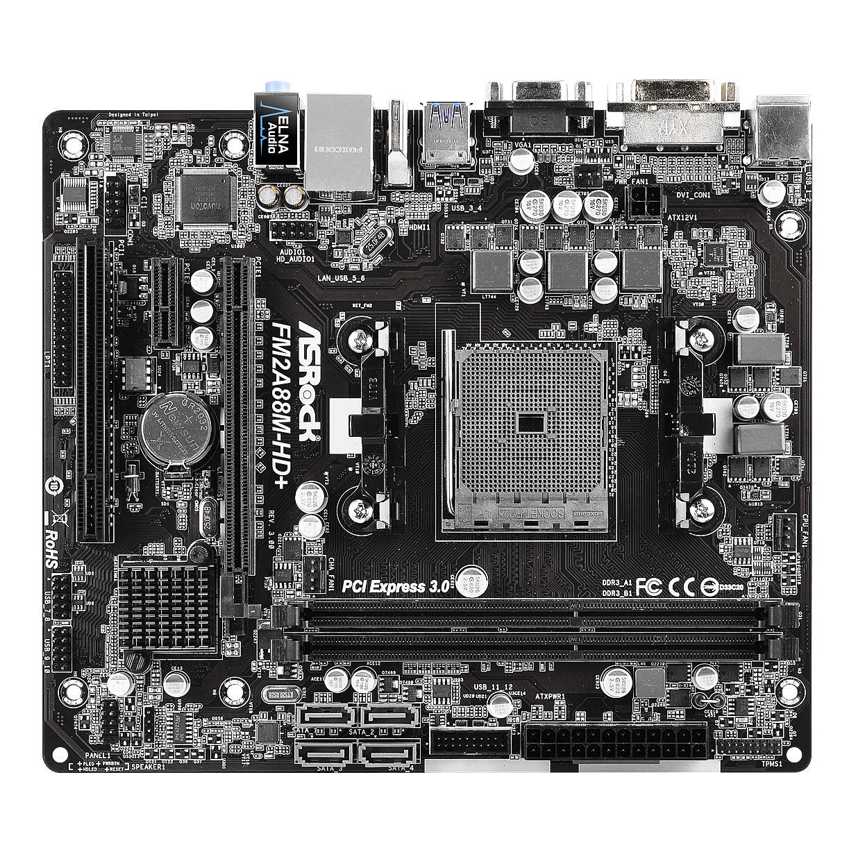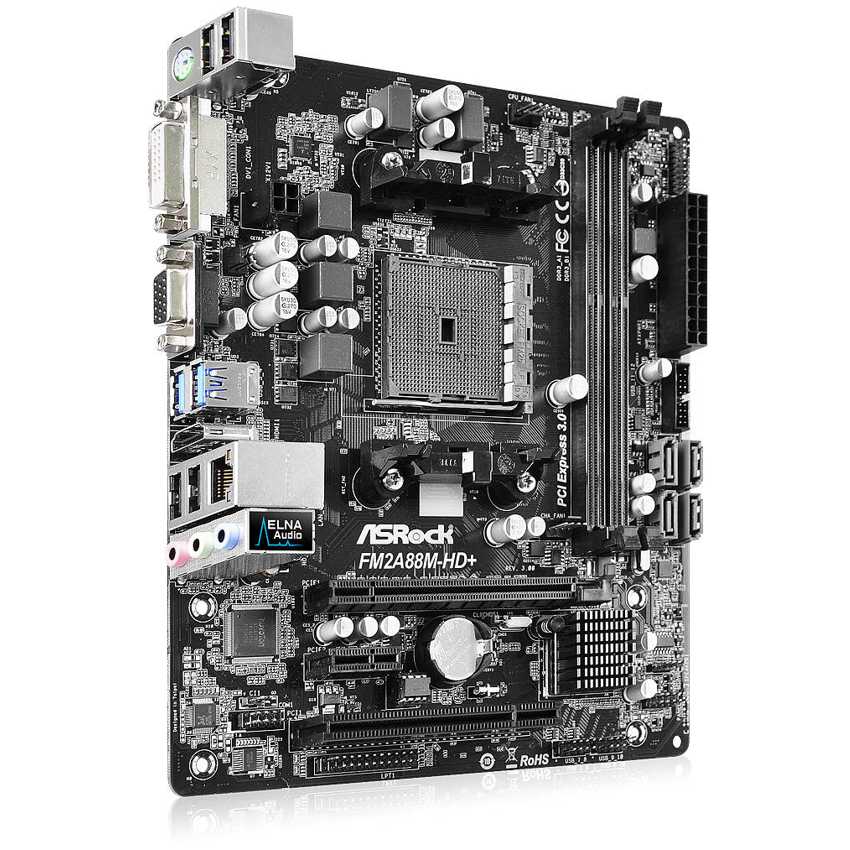 SRock Super Alloy Soporte para procesadores con Socket FM2+ 95W / FM2 100W Soporta memoria DDR3 2400+(OC) 1 PCIe 3.0 x16, 1 PCI 2.0 x1, 1 PCI Soporta AMD Dual Graphics Opciones de salida gráficos: DVI-D, D-Sub, HDMI Audio 5.1 canales HD (Realtek ALC662 Audio Codec), Capacitadores de audio ELNA 4 SATA3 4 USB 3.0 (2 Frontales, 2 Traseros) Protección Full Spike, ASRock Live Update & APP Shop
