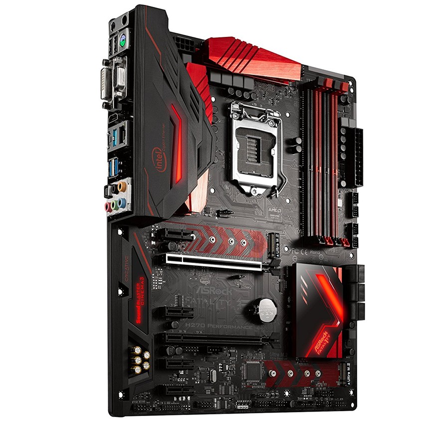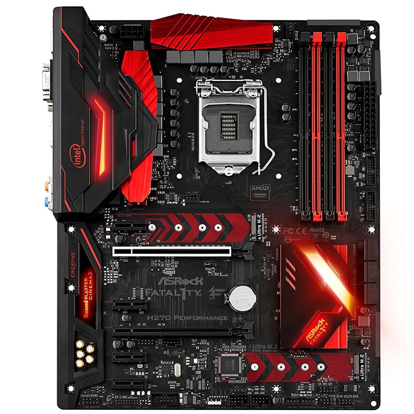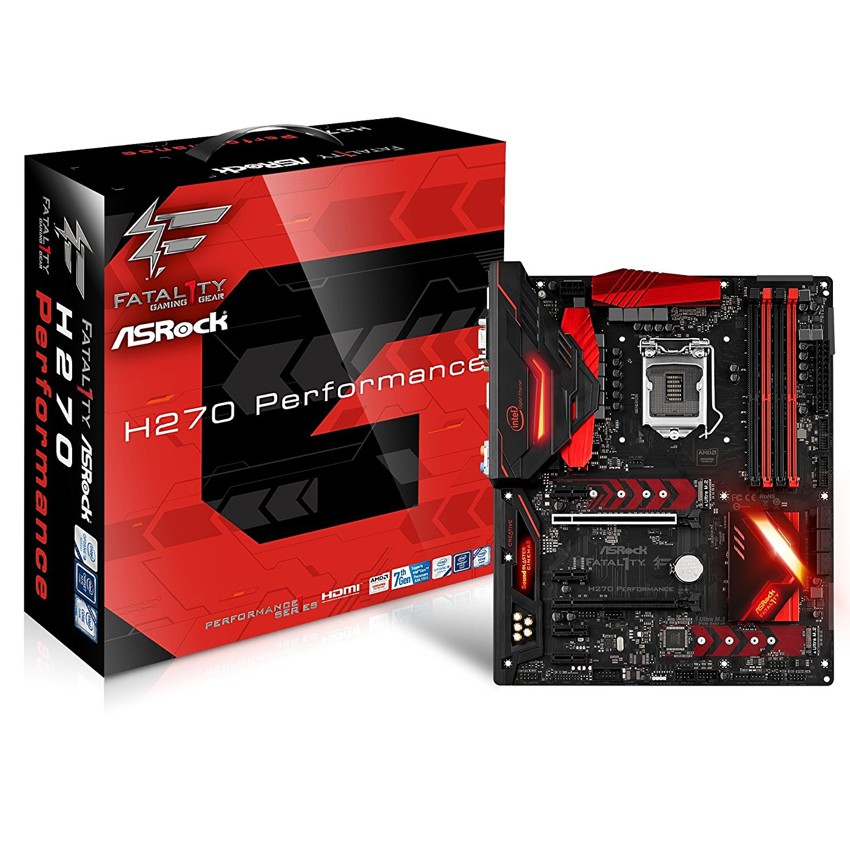 Descripción Asrock Fatal1ty H270 Performance. tipos de memoria compatibles: DDR4-SDRAM, Tipo de ranuras de memoria: DIMM, Velocidades de reloj de memoria soportadas: 2133,2400 MHz. Familia de procesador: Intel, Procesador compatible: Celeron,Core i3,Core i5,Core i7,Pentium, Socket de procesador: LGA1151. Interfaces de disco de almacenamiento soportados: M.2, Serial ATA III. Conector USB: USB Type-A,USB Type-C. Controlador LAN: Intel I219-V, Tipo de interfaz ethernet: Gigabit Ethernet