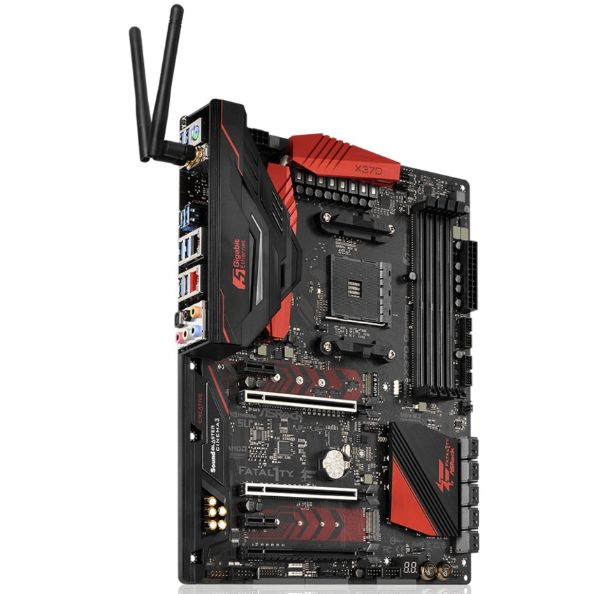 Descripción Asrock Fatal1ty X370 Professional Gaming. tipos de memoria compatibles: DDR4-SDRAM, Tipo de ranuras de memoria: DIMM, Velocidades de reloj de memoria soportadas: 2133,2400,2933,3200 MHz. Familia de procesador: AMD, Procesador compatible: AMD A, Socket de procesador: Socket AM4. Controlador LAN: Intel I211-AT, Tipo de interfaz ethernet: Gigabit Ethernet, Wi-Fi estándares: IEEE 802.11a,IEEE 802.11ac,IEEE 802.11b,IEEE 802.11g,IEEE 802.11n. Componente para: PC, Familia de componentes de tarjeta madre: AMD, Circuito integrado de tarjeta madre: AMD X370. Soporte para proceso paralelo: 2-Way CrossFireX,Quad-GPU SLI