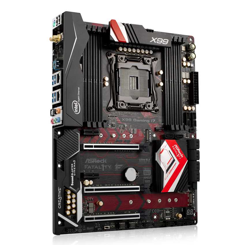 Descripción Asrock Fatal1ty X99 Professional Gaming i7. tipos de memoria compatibles: DDR4-SDRAM, Tipo de ranuras de memoria: DIMM, Canales de memoria: Cuadrángulo. Familia de procesador: Intel, Procesador compatible: Core i7, Xeon, Socket de procesador: LGA 2011-v3. Interfaces de unidad de disco duro soportadas: M.2, Serial ATA III. Controlador LAN: Intel I211-AT, Intel I218V, Tipo de interfaz ethernet: Gigabit Ethernet, Wi-Fi estándares: IEEE 802.11a, IEEE 802.11ac, IEEE 802.11b, IEEE 802.11g, IEEE 802.11n. Componente para: PC, Familia de componentes de tarjeta madre: Intel, Circuito integrado de tarjeta madre: Intel X99