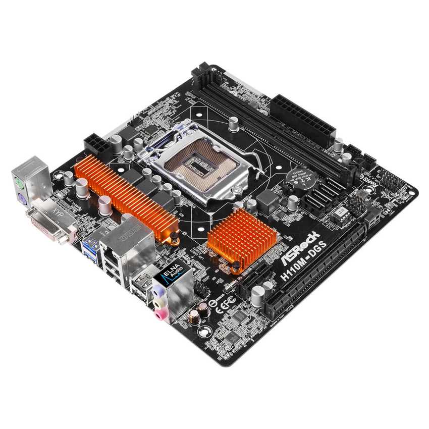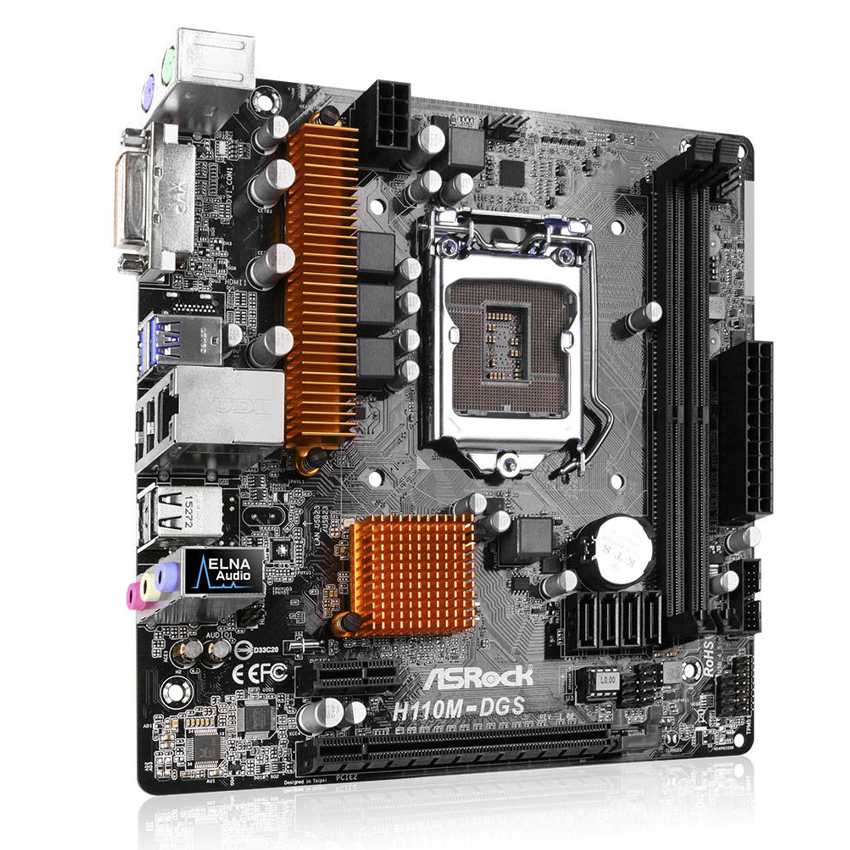 Descripción Asrock H110M-DGS. tipos de memoria compatibles: DDR4-SDRAM, Tipo de ranuras de memoria: DIMM, Canales de memoria: Dual. Familia de procesador: Intel, Procesador compatible: Celeron, Core i3, Core i5, Core i7, Pentium, Socket de procesador: LGA1151. Interfaces de unidad de disco duro soportadas: Serial ATA III. Controlador LAN: Realtek RTL8111GR, Tipo de interfaz ethernet: Gigabit Ethernet. Componente para: PC, Familia de componentes de tarjeta madre: Intel, Circuito integrado de tarjeta madre: Intel H110