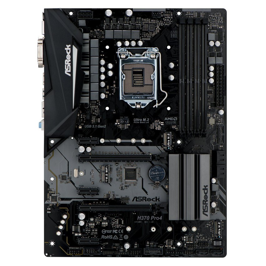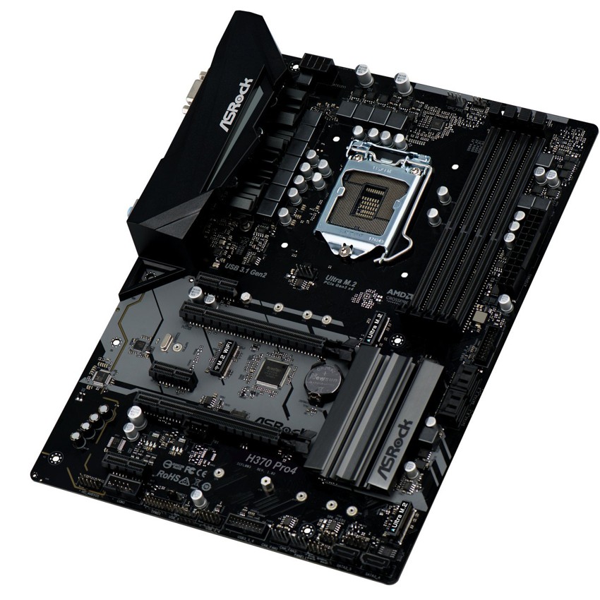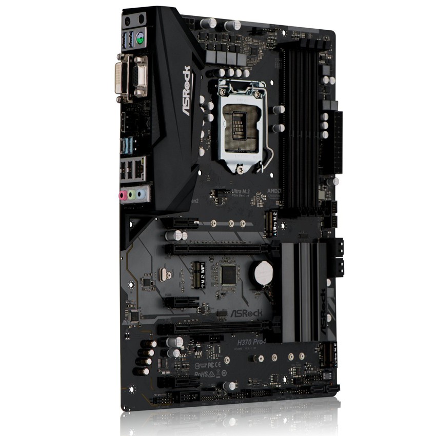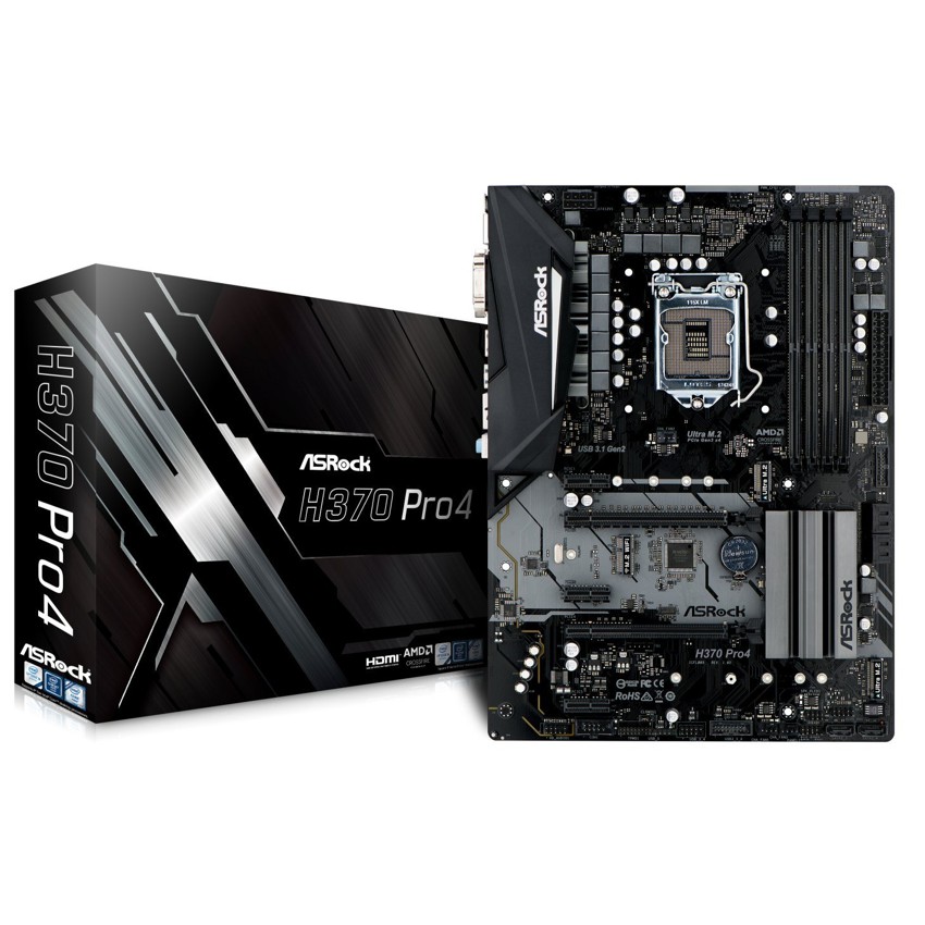 Descripción Asrock H370 Pro4. tipos de memoria compatibles: DDR4-SDRAM, Tipo de ranuras de memoria: DIMM, Velocidades de reloj de memoria soportadas: 2133,2400,2666 MHz. Fabricante de procesador: Intel, Procesador compatible: Intel® Celeron®, Intel Core i3, Intel Core i5, Intel Core i7, Socket de procesador: LGA 1151 (Socket H4). Controlador LAN: Intel I219-V, Tipo de interfaz ethernet: Gigabit Ethernet. Componente para: PC, Familia de componentes de tarjeta madre: Intel, Tarjeta madre, factor de forma: ATX. Soporte para proceso paralelo: 4-Way CrossFireX