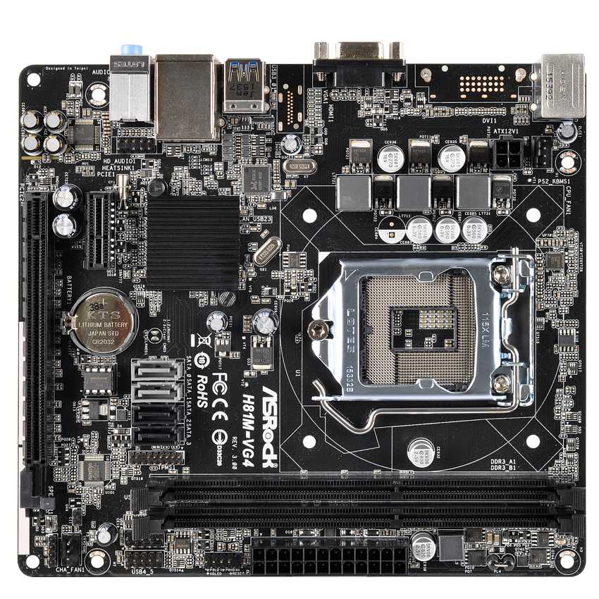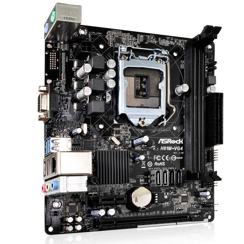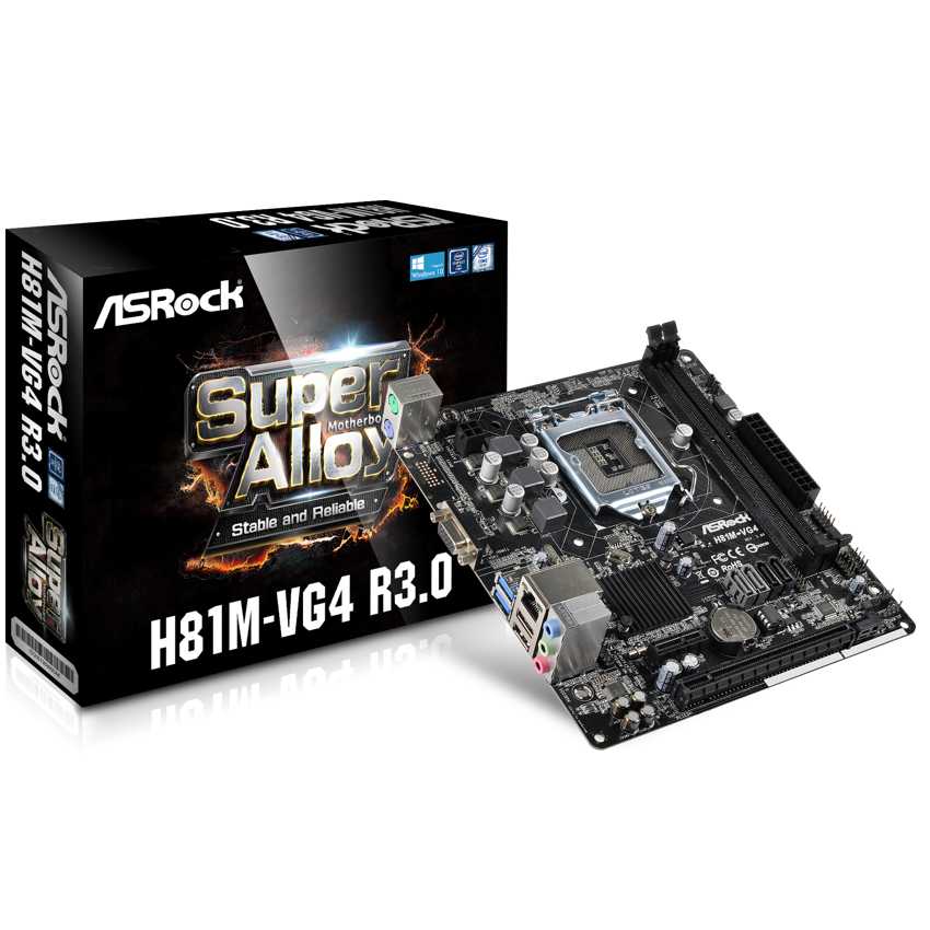 Descripción Asrock H81M-VG4 R3.0. tipos de memoria compatibles: DDR3-SDRAM, Tipo de ranuras de memoria: DIMM, Memoria interna: 16 GB. Familia de procesador: Intel, Procesador compatible: Celeron, Core i3, Core i5, Core i7, Pentium, Xeon, Socket de procesador: Socket H3 (LGA 1150). Interfaces de unidad de disco duro soportadas: Serial ATA II, Serial ATA III. Controlador LAN: Realtek RTL8111C, Tipo de interfaz ethernet: Gigabit Ethernet. Componente para: PC, Familia de componentes de tarjeta madre: Intel, Circuito integrado de tarjeta madre: Intel H81