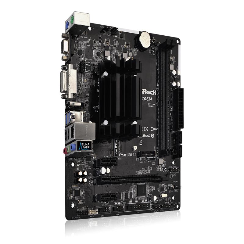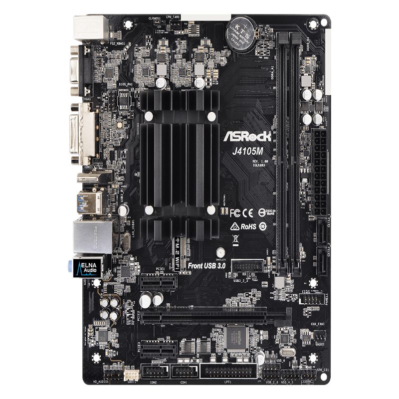 Descripción Asrock J4105M. tipos de memoria compatibles: DDR4-SDRAM, Tipo de ranuras de memoria: DIMM, Velocidades de reloj de memoria soportadas: 2133,2400 MHz. Fabricante de procesador: Intel, Procesador compatible: Intel® Celeron®, Familia de procesador: Intel® Celeron®. Tipo de interfaz ethernet: Gigabit Ethernet, Controlador LAN: Realtek RTL8111E. Componente para: PC, Familia del chipset: Intel, Factor de forma: micro ATX. Adaptador gráfico: Intel® UHD Graphics 600, Graphics chipset: Intel, Máxima resolución: 4096 x 2160 Pixeles