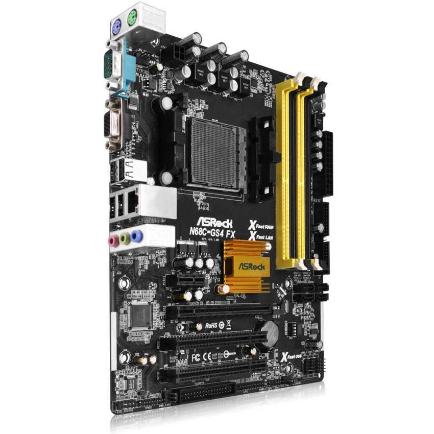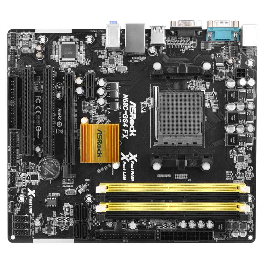 Descripción Asrock N68C-GS4 FX. tipos de memoria compatibles: DDR3-SDRAM, Tipo de ranuras de memoria: DIMM, Canales de memoria: Dual. Familia de procesador: AMD, Socket de procesador: Socket AM3+, Procesador FSB, soporte: 1000 MHz. Interfaces de unidad de disco duro soportadas: Serial ATA II. Tipo de interfaz ethernet: Gigabit. Componente para: PC, Familia de componentes de tarjeta madre: NVIDIA, Circuito integrado de tarjeta madre: NVIDIA nForce 630a