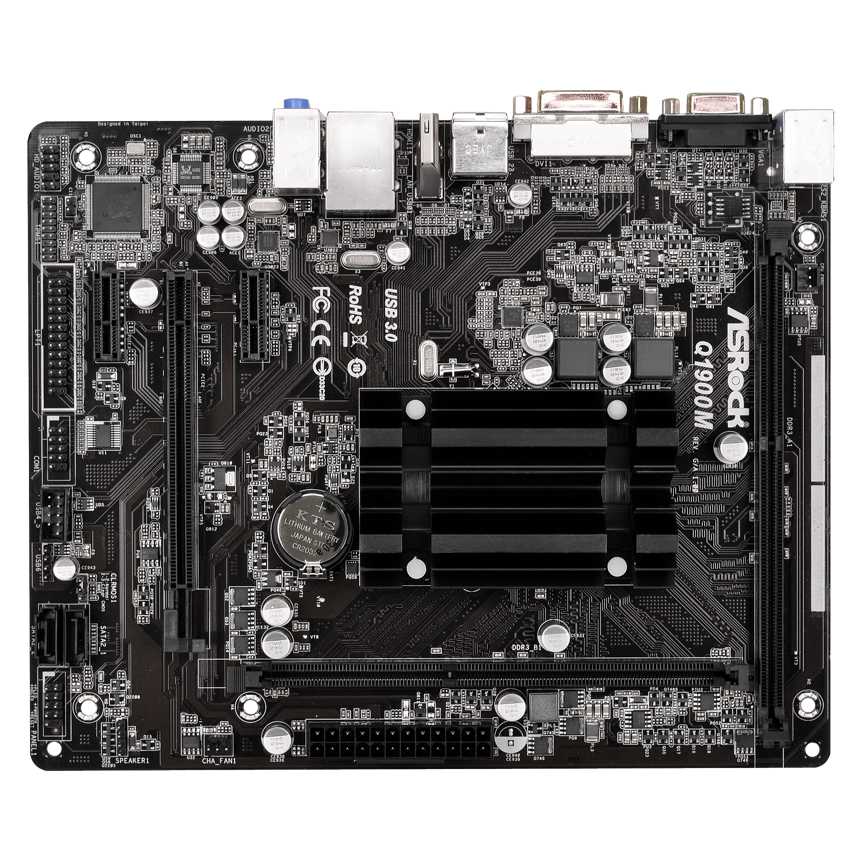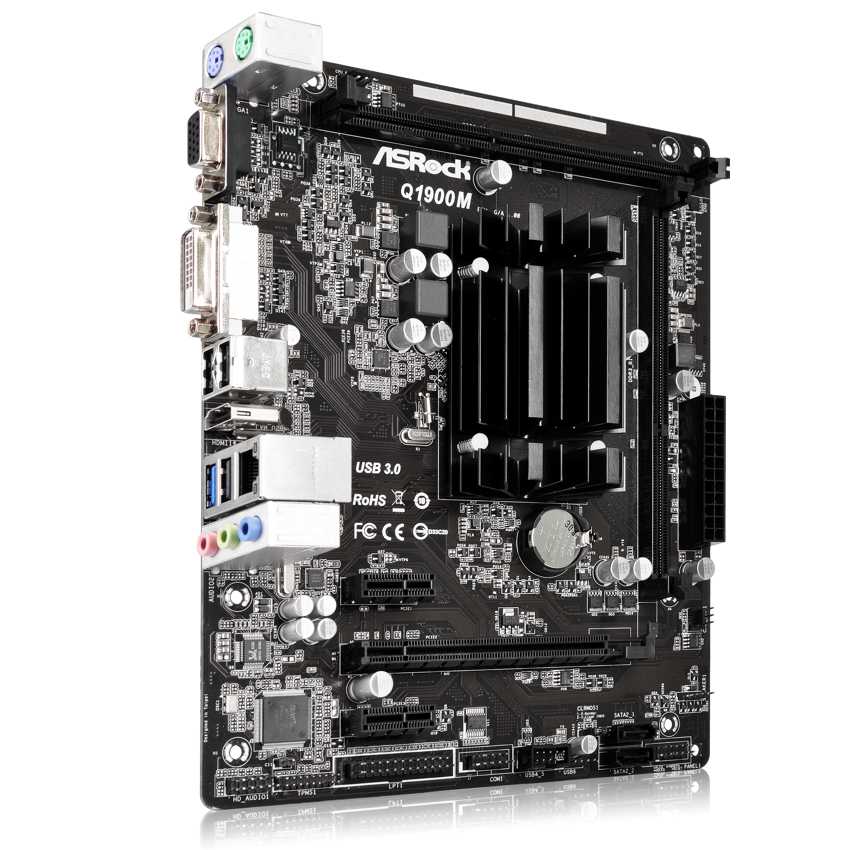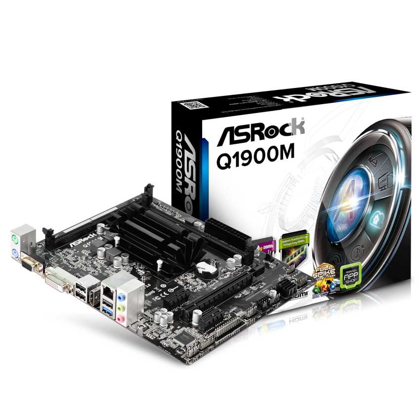 Descripción Asrock Q1900M. tipos de memoria compatibles: DDR3-SDRAM, Tipo de ranuras de memoria: DIMM, Canales de memoria: Dual. Familia de procesador: Intel. Interfaces de unidad de disco duro soportadas: Serial ATA II. Controlador LAN: Realtek RTL8111GR. Componente para: PC, Familia de componentes de tarjeta madre: Intel, Tarjeta madre, factor de forma: micro ATX