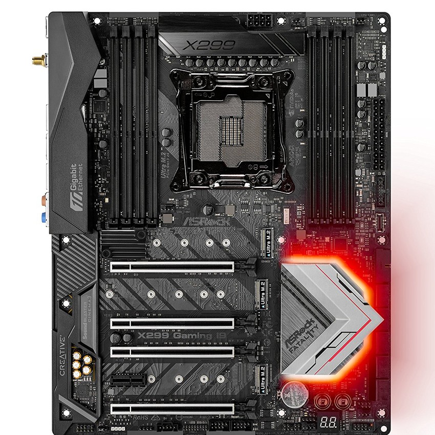 Descripción Asrock Fatal1ty X299 Professional Gaming i9. tipos de memoria compatibles: DDR4-SDRAM, Tipo de ranuras de memoria: DIMM, Velocidades de reloj de memoria soportadas: 2133,2400,2600,2800,2933,3200,3600,3733,3800,3866,4000,4133,4266,4400 MHz. Familia de procesador: Intel, Procesador compatible: Core i9, Socket de procesador: LGA 2066. Controlador LAN: Intel I211-AT,Intel I219-V, Tipo de interfaz ethernet: 10 Gigabit Ethernet, Wi-Fi estándares: IEEE 802.11a,IEEE 802.11ac,IEEE 802.11b,IEEE 802.11g,IEEE 802.11n. Componente para: PC, Familia de componentes de tarjeta madre: Intel, Circuito integrado de tarjeta madre: Intel X299. Soporte para proceso paralelo: CrossFireX,3-Way CrossFireX,3-Way SLI,Quad-GPU CrossFireX,Quad-GPU SLI