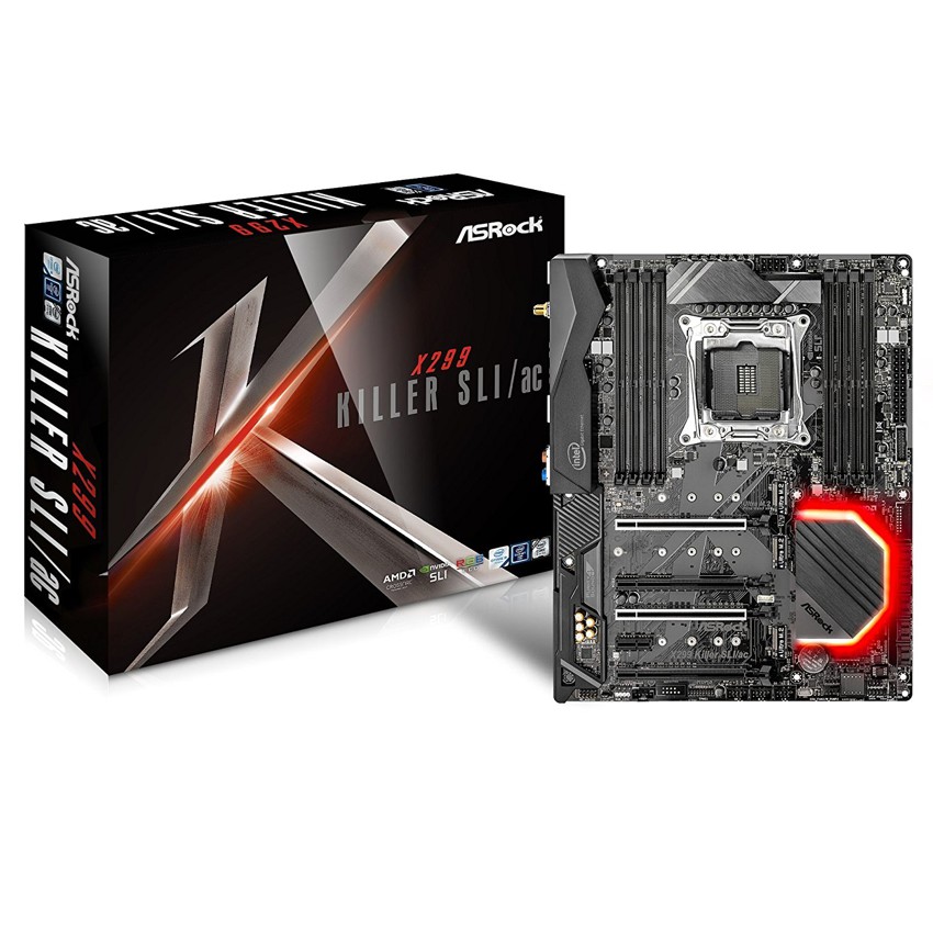 Descripción Asrock X299 Killer SLI/ac. tipos de memoria compatibles: DDR4-SDRAM, Tipo de ranuras de memoria: DIMM, Velocidades de reloj de memoria soportadas: 2133,2400,2666,2800,2933,3200,3600,3733,3800,3866,4000,4133,4266,4400 MHz. Familia de procesador: Intel, Procesador compatible: Core i9, Socket de procesador: LGA 2066. Controlador LAN: Intel I219-V, Tipo de interfaz ethernet: Gigabit Ethernet, Wi-Fi estándares: IEEE 802.11a,IEEE 802.11ac,IEEE 802.11b,IEEE 802.11g,IEEE 802.11n. Componente para: PC, Familia de componentes de tarjeta madre: Intel, Circuito integrado de tarjeta madre: Intel X299. Soporte para proceso paralelo: 3-Way CrossFireX,3-Way SLI,4-Way CrossFireX,4-Way SLI
