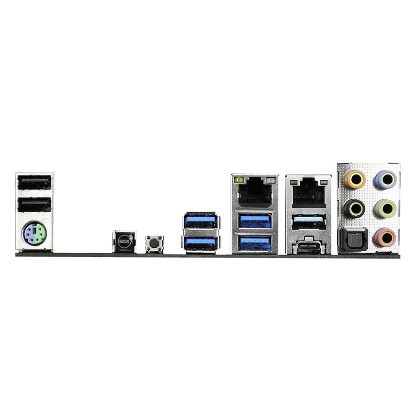 Panel trasero Entrada/salida - 1 x Puerto PS/2 Teclado/Ratón - 1 x Puerto de salida Óptico SPDIF - 2 x puertos USB 2.0 (Soporta Protección ESD) - 1 x puerto USB 3.1 Gen2 Type-A (10 Gb/s) (ASMedia ASM3142) (Soporta Protección ESD) - 1 x puerto USB 3.1 Gen2 Type-C (10 Gb/s) (ASMedia ASM3142) (Soporta Protección ESD) - 4 x puertos USB 3.1 Gen1 (Soporta Protección ESD)* - 2 x Puertos con LED LAN RJ-45 (LEDs de Activación/conexión y velocidad) - 1 x Interruptor Flashback del BIOS - 1 x Botón Borrar CMOS - Conectores HD Audio: Altavoz posterior / Central / Bajo / entrada de línea / Altavoz Delantero / Micrófono (Audio Jack de Oro) *La alimentación Ultra USB es compatible con puertos USB3_34. La función de activación de ACPI no es compatible con los puertos USB3_34.
