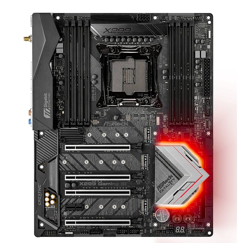Descripción Asrock Fatal1ty X299 Professional Gaming i9. tipos de memoria compatibles: DDR4-SDRAM, Tipo de ranuras de memoria: DIMM, Velocidades de reloj de memoria soportadas: 2133,2400,2666,2800,2933,3200,3600,3733,3800,3866,4000,4133,4266,4400 MHz. Familia de procesador: Intel, Procesador compatible: Core X-series, Socket de procesador: LGA 2066. Controlador LAN: Intel I211-AT,Intel I219-V, Tipo de interfaz ethernet: 10 Gigabit Ethernet, Wi-Fi estándares: IEEE 802.11ac. Componente para: PC, Familia de componentes de tarjeta madre: Intel, Circuito integrado de tarjeta madre: Intel X299. Tipos de BIOS: UEFI AMI, BIOS, tamaño de memoria: 32 MB