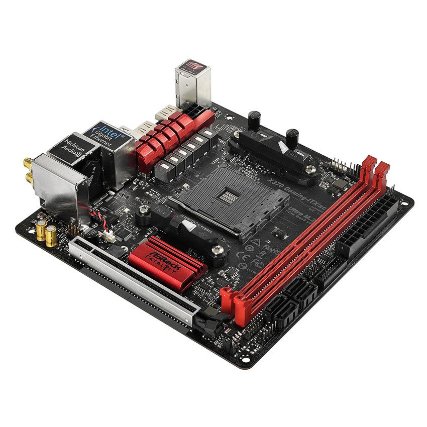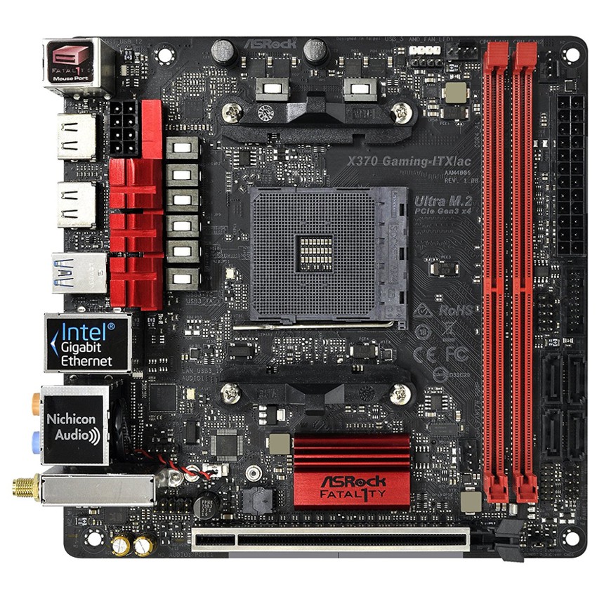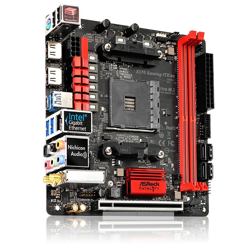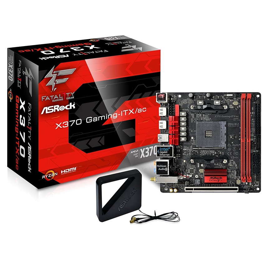 Descripción Asrock Fatal1ty X370 Gaming-ITX/ac. tipos de memoria compatibles: DDR4-SDRAM, Tipo de ranuras de memoria: DIMM, Velocidades de reloj de memoria soportadas: 2133,2400,2667,2933,3200,3466 MHz. Familia de procesador: AMD, Procesador compatible: AMD A,Ryzen, Socket de procesador: Socket AM4. Controlador LAN: Intel I211-AT, Tipo de interfaz ethernet: Gigabit Ethernet, Wi-Fi estándares: IEEE 802.11a,IEEE 802.11ac,IEEE 802.11b,IEEE 802.11g,IEEE 802.11n. Componente para: PC, Familia de componentes de tarjeta madre: AMD, Circuito integrado de tarjeta madre: AMD X370. Memoria máxima de adaptador de gráficos: 2048 MB, Graphics chipset: AMD, Máxima resolución: 4096 x 2160 Pixeles