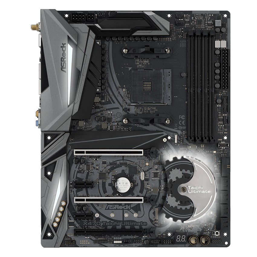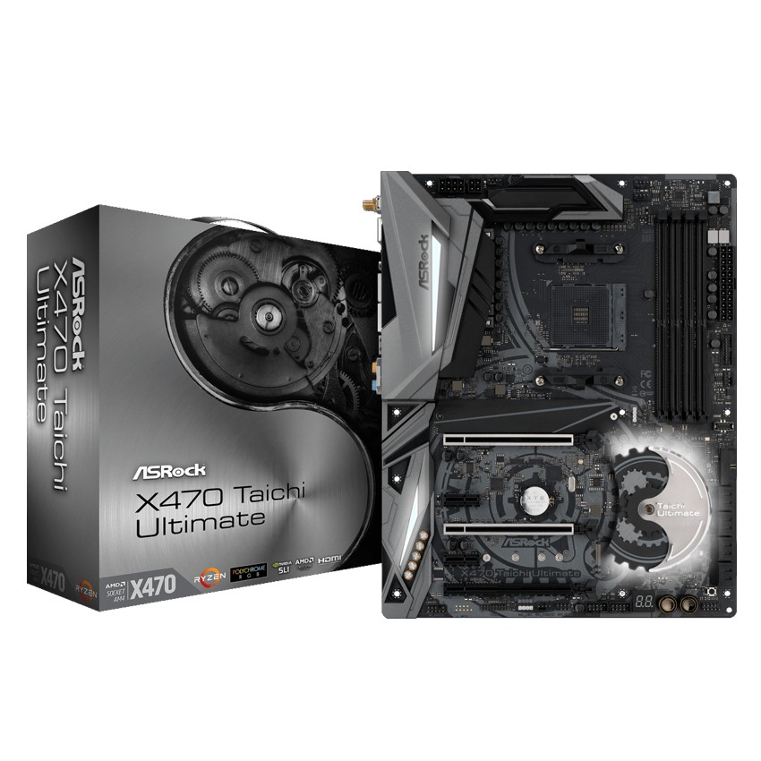 Descripción Asrock X470 Taichi Ultimate. tipos de memoria compatibles: DDR4-SDRAM, Tipo de ranuras de memoria: DIMM, Velocidades de reloj de memoria soportadas: 2133,2400,2667,2933,3200,3466 MHz. Fabricante de procesador: AMD, Procesador compatible: AMD Ryzen, Socket de procesador: Socket AM4. Interfaces de disco de almacenamiento soportados: M.2, Serial ATA III. Tipo de interfaz ethernet: 10 Gigabit Ethernet, Gigabit Ethernet, Wi-Fi estándares: IEEE 802.11a,IEEE 802.11ac,IEEE 802.11b,IEEE 802.11g,IEEE 802.11n. Componente para: PC, Familia de componentes de tarjeta madre: AMD, Circuito integrado de tarjeta madre: AMD Promontory X470