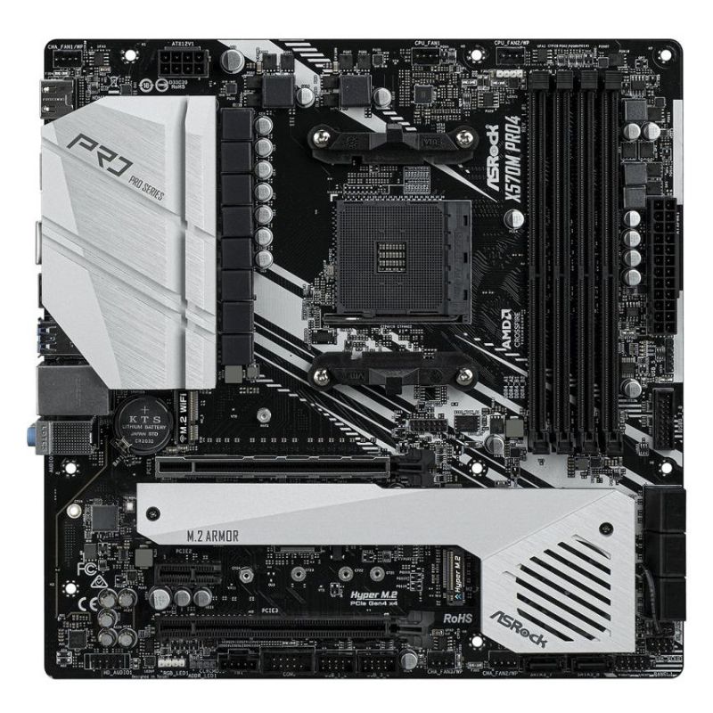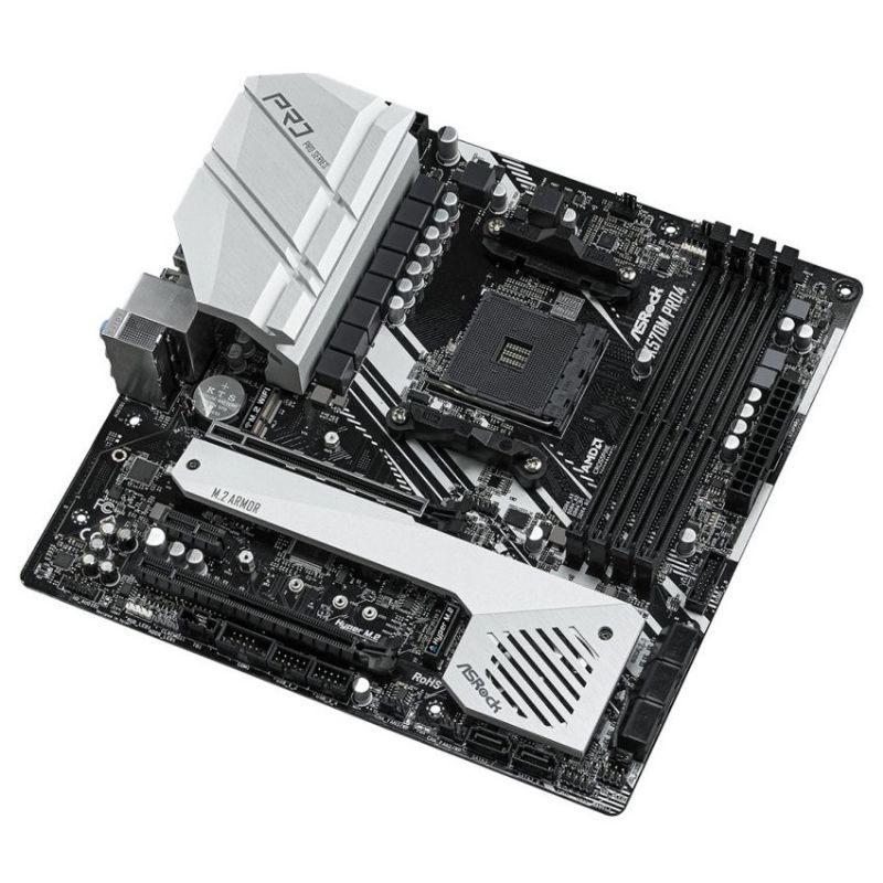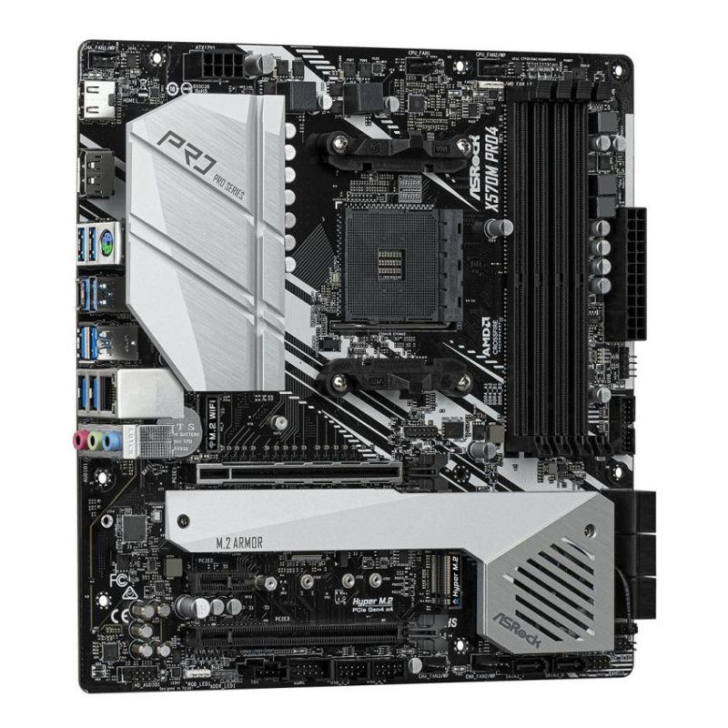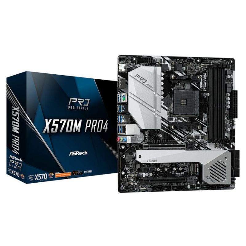 Descripción Asrock X570M Pro4. Fabricante de procesador: AMD, Socket de procesador: Zócalo AM4, Procesador compatible: 2nd Generation AMD Ryzen™ 3, AMD Ryzen 3 3rd Gen, 2nd Generation AMD Ryzen™ 5, 3rd Generation.... tipos de memoria compatibles: DDR4-SDRAM, Tipo de ranuras de memoria: DIMM, Velocidades de reloj de memoria soportadas: 2133,2400,2667,2933,3200,3466,3600,3733,3800,3866,4000,4133,4200 MHz. Interfaces de disco de almacenamiento soportados: Serial ATA III. Soporte para proceso paralelo: CrossFireX,Quad-GPU CrossFireX, Memoria máxima de adaptador de gráficos: 2048 MB, Máxima resolución: 4096 x 2160 Pixeles. Tipo de interfaz ethernet: Gigabit Ethernet, Controlador LAN: Intel® I211-AT