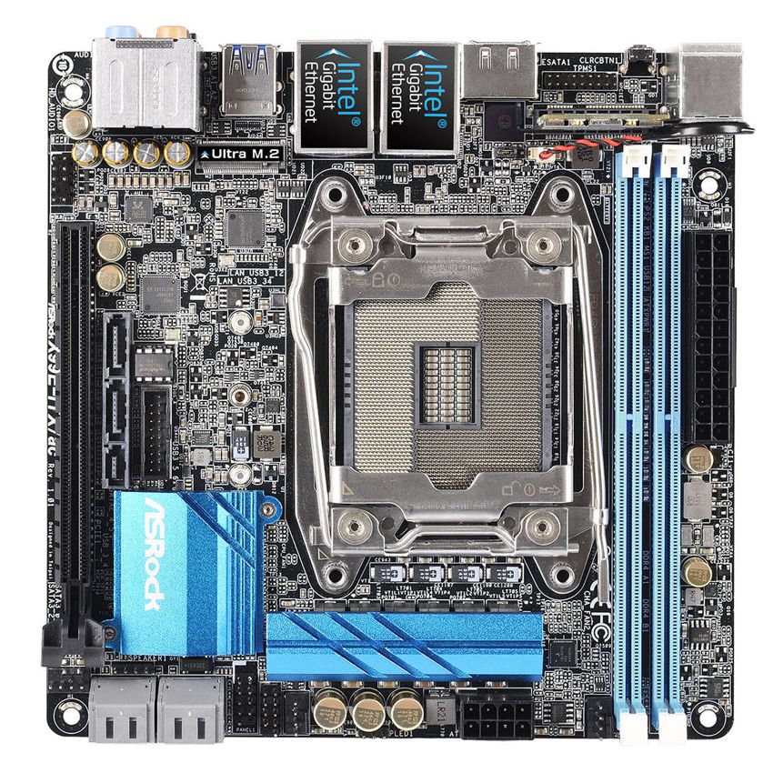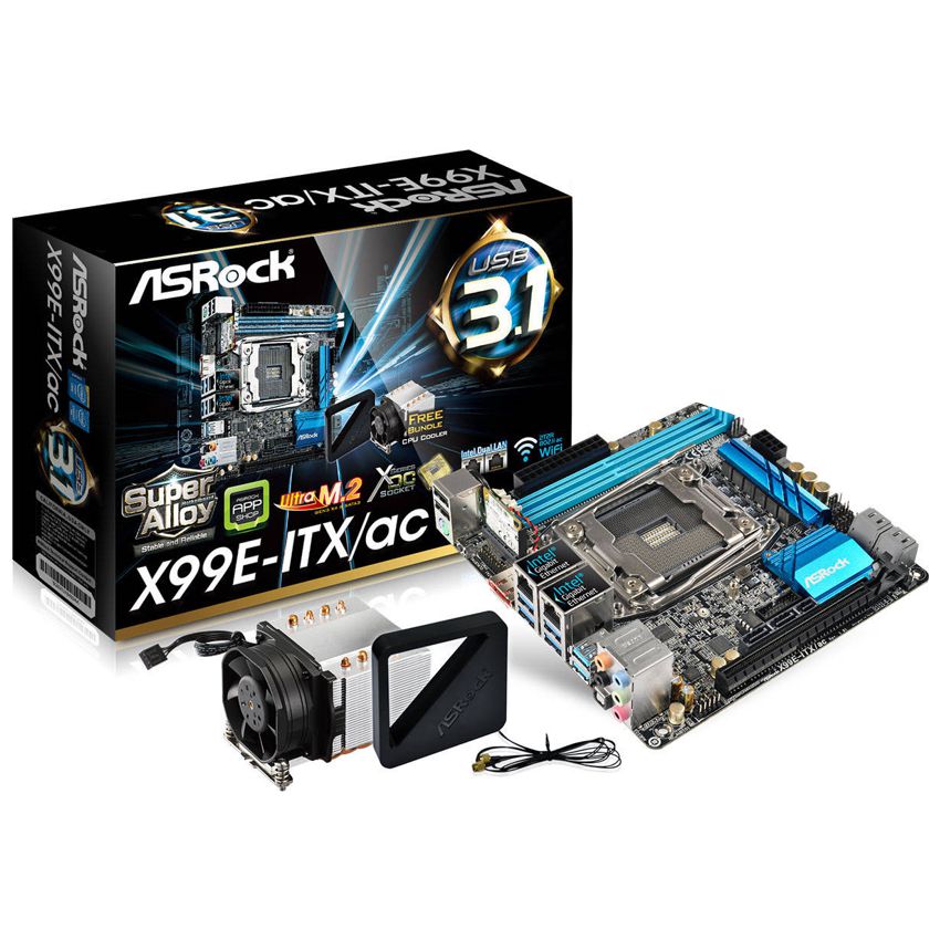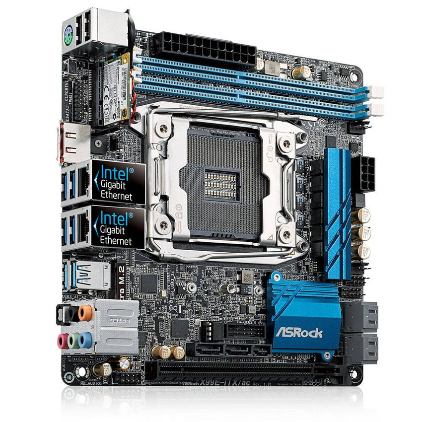 Descripción Asrock X99E-ITX/ac. tipos de memoria compatibles: DDR4-SDRAM, Tipo de ranuras de memoria: DIMM, Canales de memoria: Dual. Familia de procesador: Intel, Procesador compatible: Core i7, Xeon, Socket de procesador: LGA 2011-v3. Interfaces de unidad de disco duro soportadas: SATA, Serial ATA III. Controlador LAN: Intel I211-AT, Intel I218V, Tipo de interfaz ethernet: Gigabit, Wi-Fi estándares: 802.11ac. Componente para: PC, Familia de componentes de tarjeta madre: Intel, Circuito integrado de tarjeta madre: Intel X99