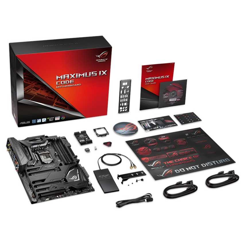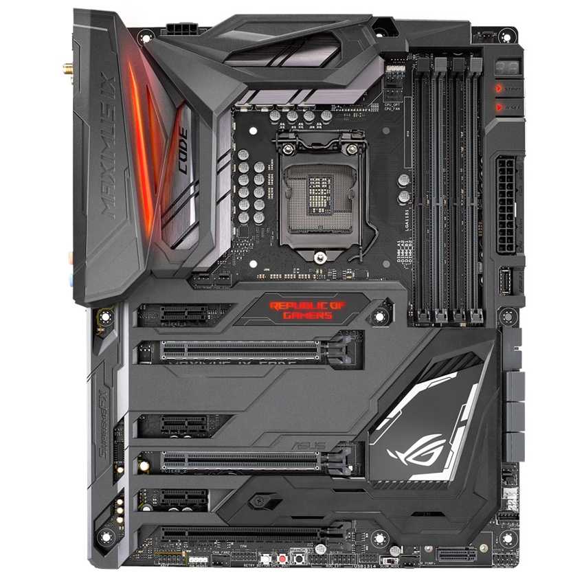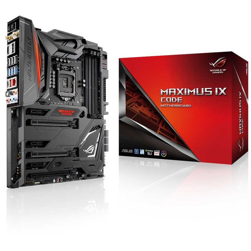 Descripción ASUS MAXIMUS IX CODE. tipos de memoria compatibles: DDR4-SDRAM, Tipo de ranuras de memoria: DIMM, Memoria interna: 64 GB. Familia de procesador: Intel, Procesador compatible: Celeron, Core i3, Core i5, Pentium, Socket de procesador: LGA1151. Controlador LAN: Intel I219-V, Wi-Fi estándares: IEEE 802.11a, IEEE 802.11ac, IEEE 802.11b, IEEE 802.11g, IEEE 802.11n, Versión de Bluetooth: 4.1. Componente para: PC, Familia de componentes de tarjeta madre: Intel, Circuito integrado de tarjeta madre: Intel Z270. Soporte para proceso paralelo: 2-Way SLI, 3-Way CrossFireX
