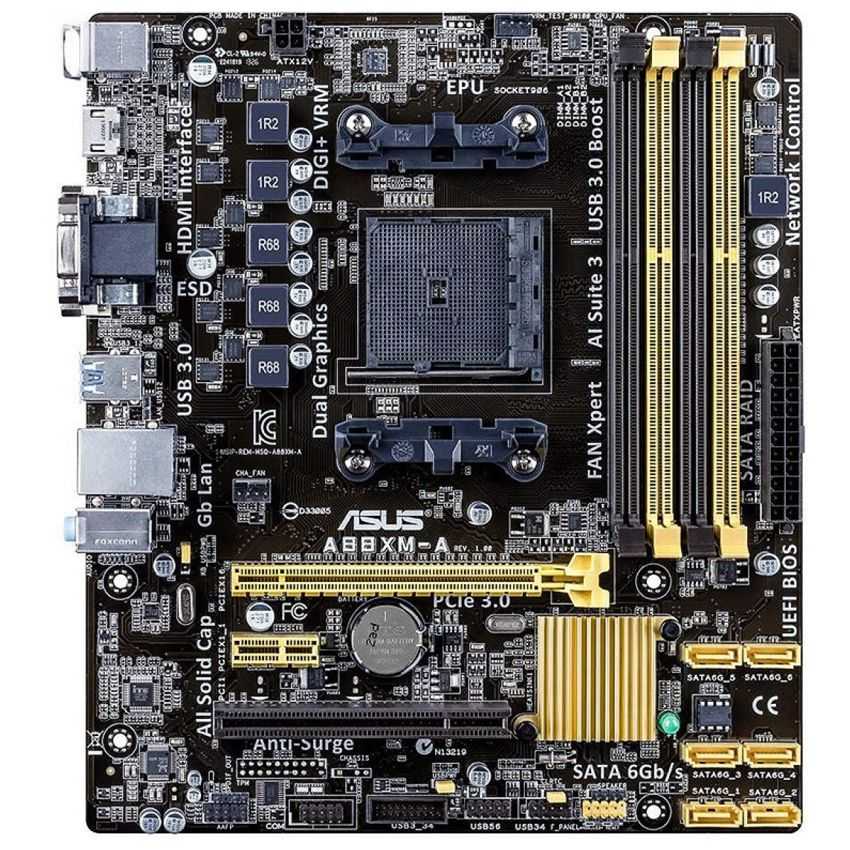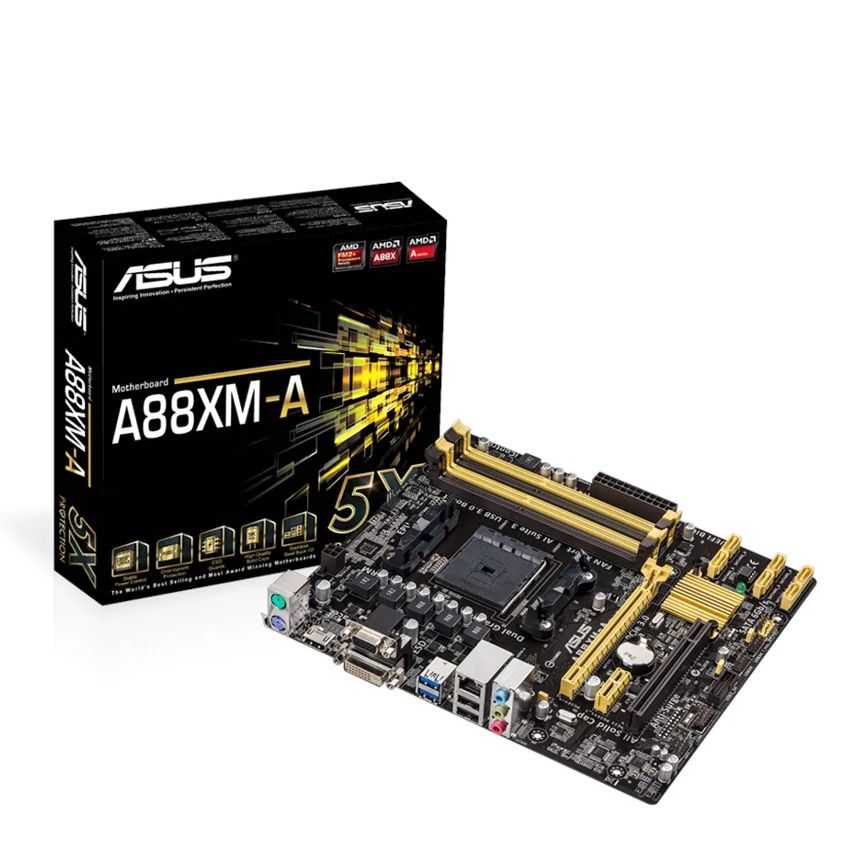 Descripción ASUS A88XM-A/USB 3.1. tipos de memoria compatibles: DDR3-SDRAM, Tipo de ranuras de memoria: DIMM, Canales de memoria: Dual. Familia de procesador: AMD, Procesador compatible: Athlon, Socket de procesador: Socket FM2+. Controlador LAN: Realtek RTL8111H, Tipo de interfaz ethernet: Gigabit Ethernet. Componente para: PC, Familia de componentes de tarjeta madre: AMD, Circuito integrado de tarjeta madre: AMD A88X. Memoria máxima de adaptador de gráficos: 2048 MB, Adaptador gráfico: Radeon HD 7000, Graphics chipset: AMD